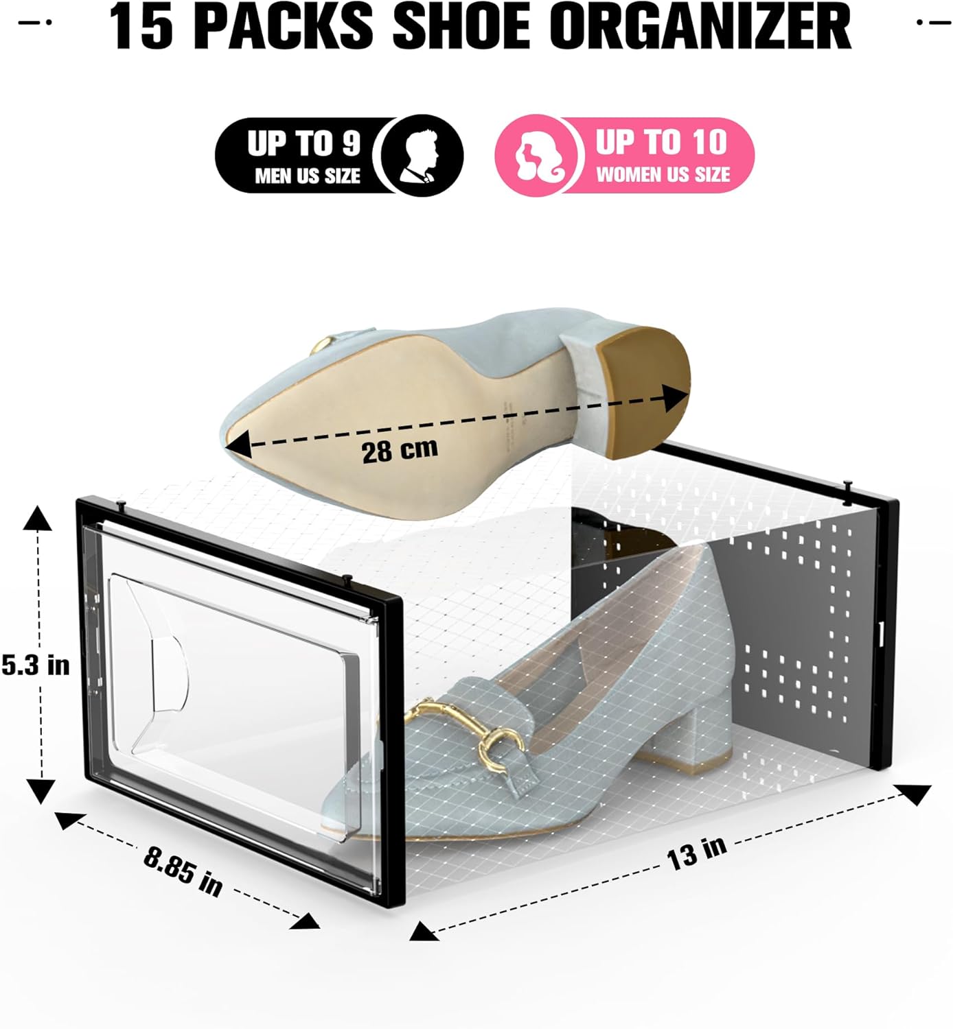 • Large Quantity-Set of 15: A set of 15 shoe Storage boxes, meeting your home storage needs and providing you with an efficient storage solution