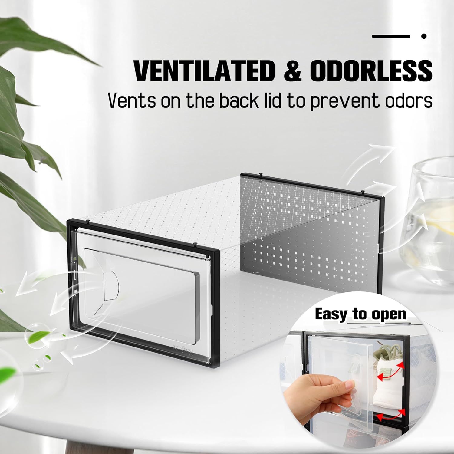 • Visibility & Ventilation Design: Transparent shoe case design allows you to easily find your shoes without opening the box, and rear ventilation holes promote air circulation and prevent odors