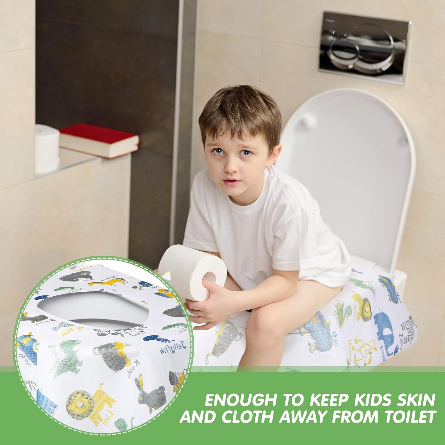 50 Packs Disposable Toilet Seat Covers Extra Large Individually Wrapped for Kids and Adults, Portable Non Slip Waterproof Potty Seat Covers for Toddlers Potty Training, Travel (Animal)