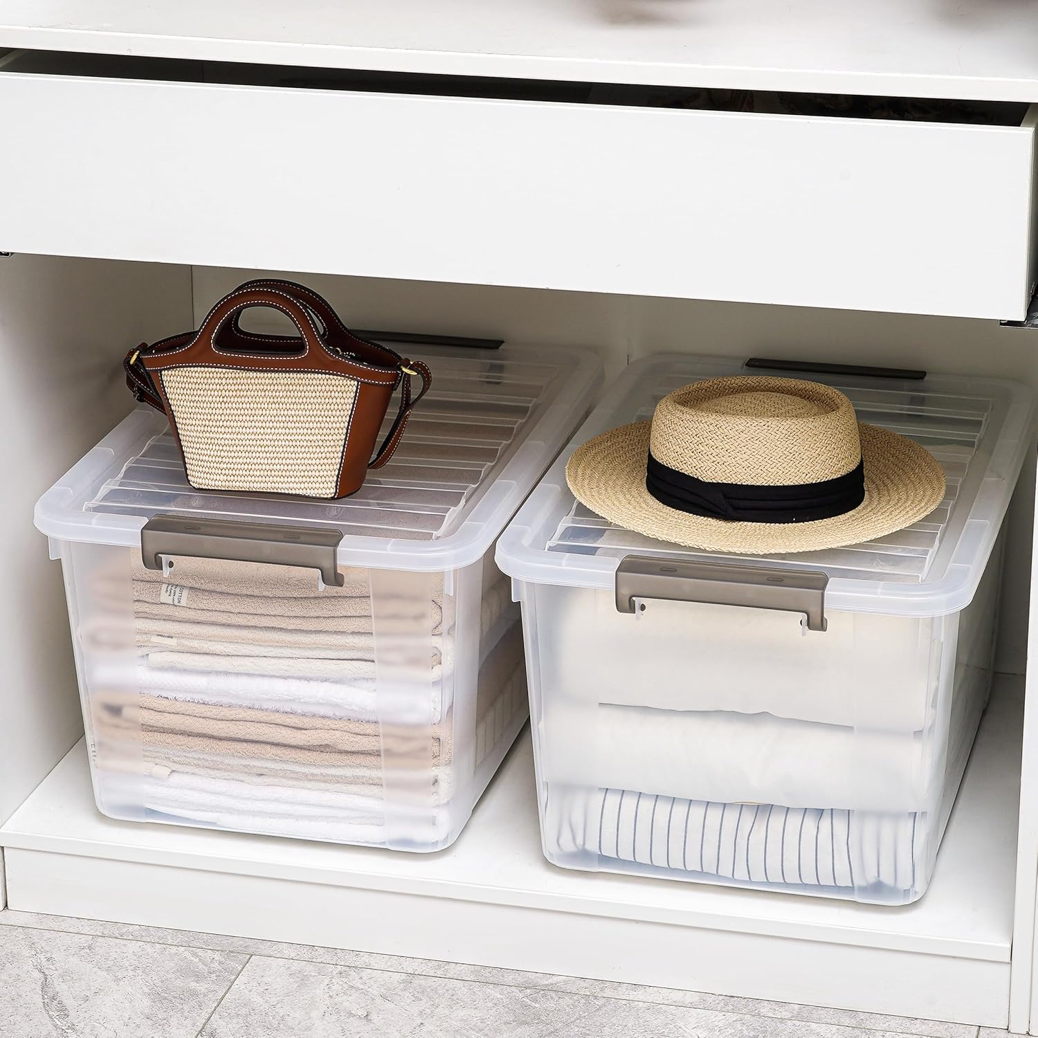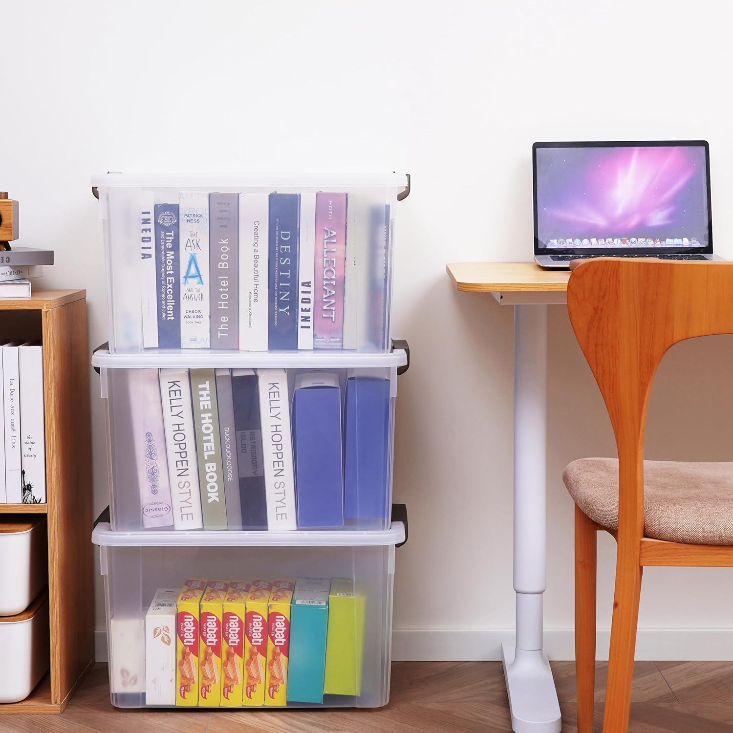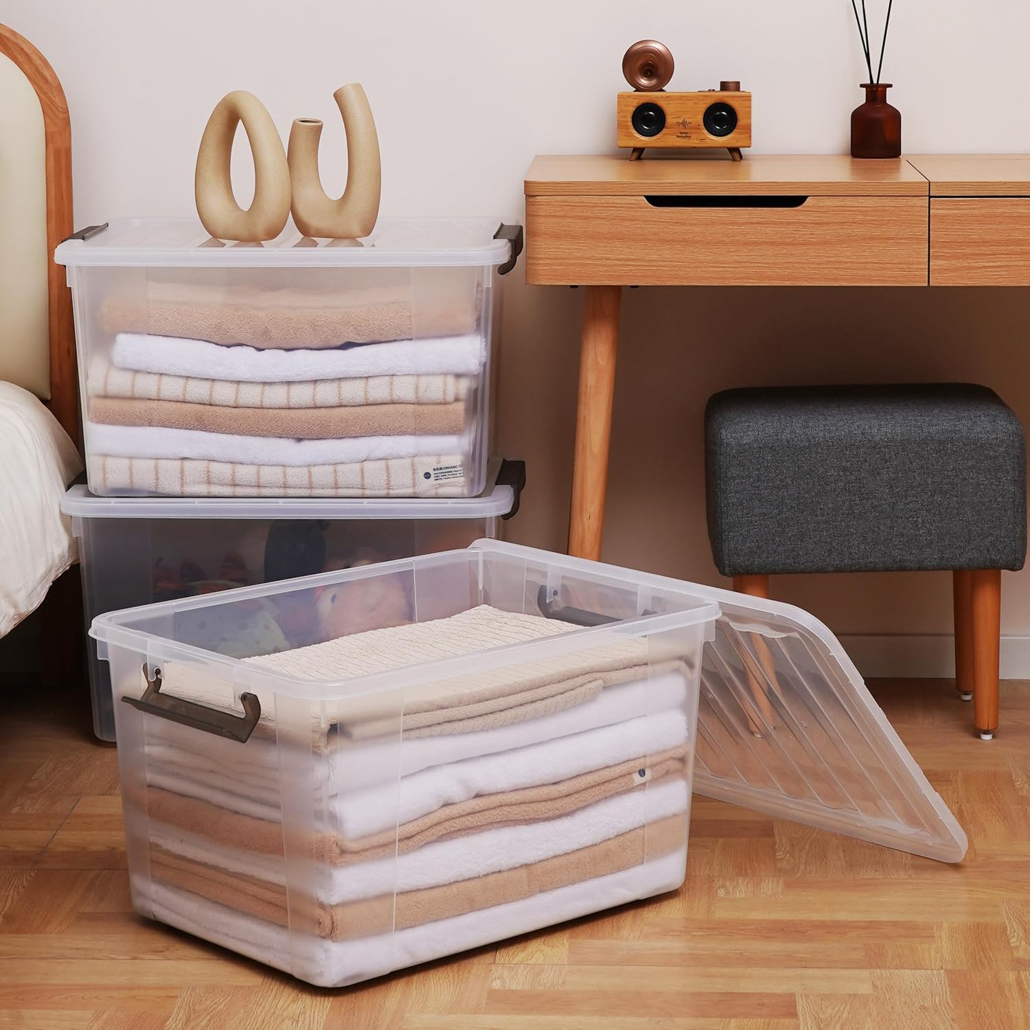 Citylife 69 QT Plastic Storage Bins with Latching Lids Stackable Storage Containers for Organizing Large Clear Storage Box for Garage, Closet, Kitchen, 4 Packs