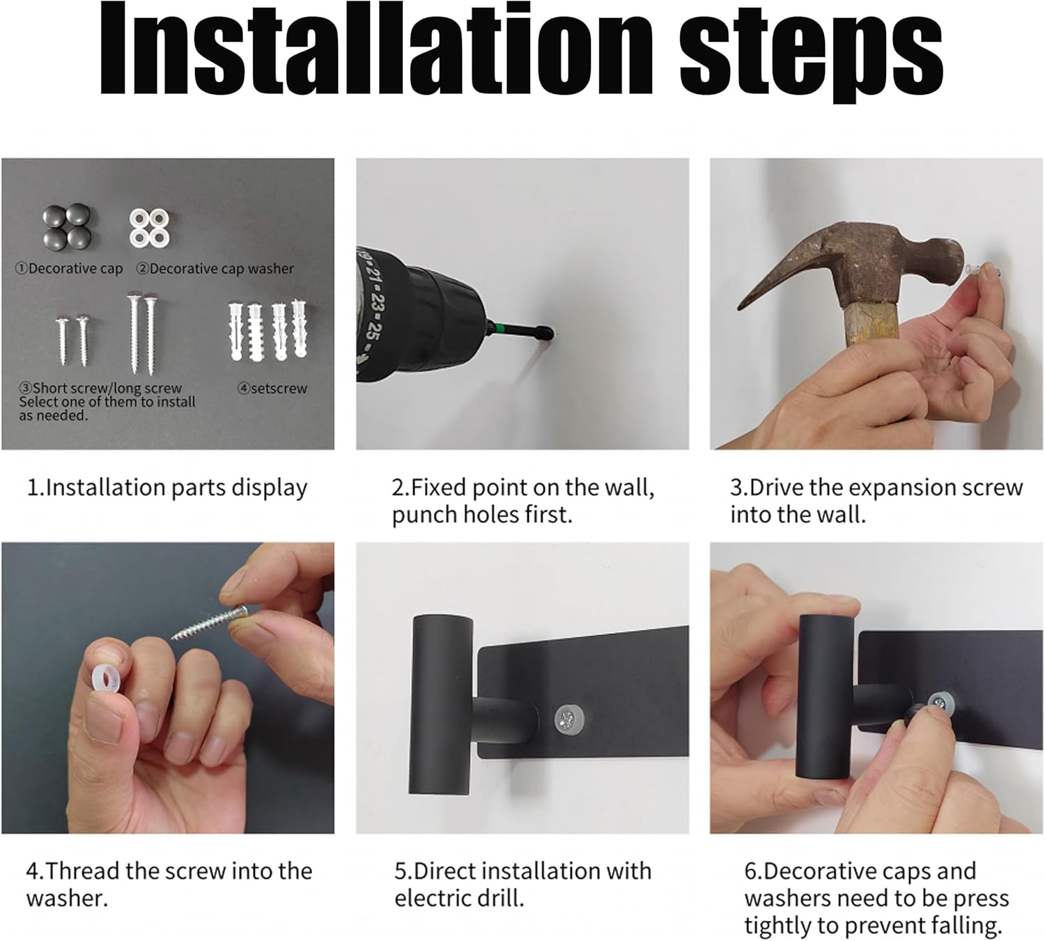 • Easy to install: Wall mounted hangers are easy to install on walls or wooden doors; The installation hardware includes screws, plastic expansion anchors, and washers