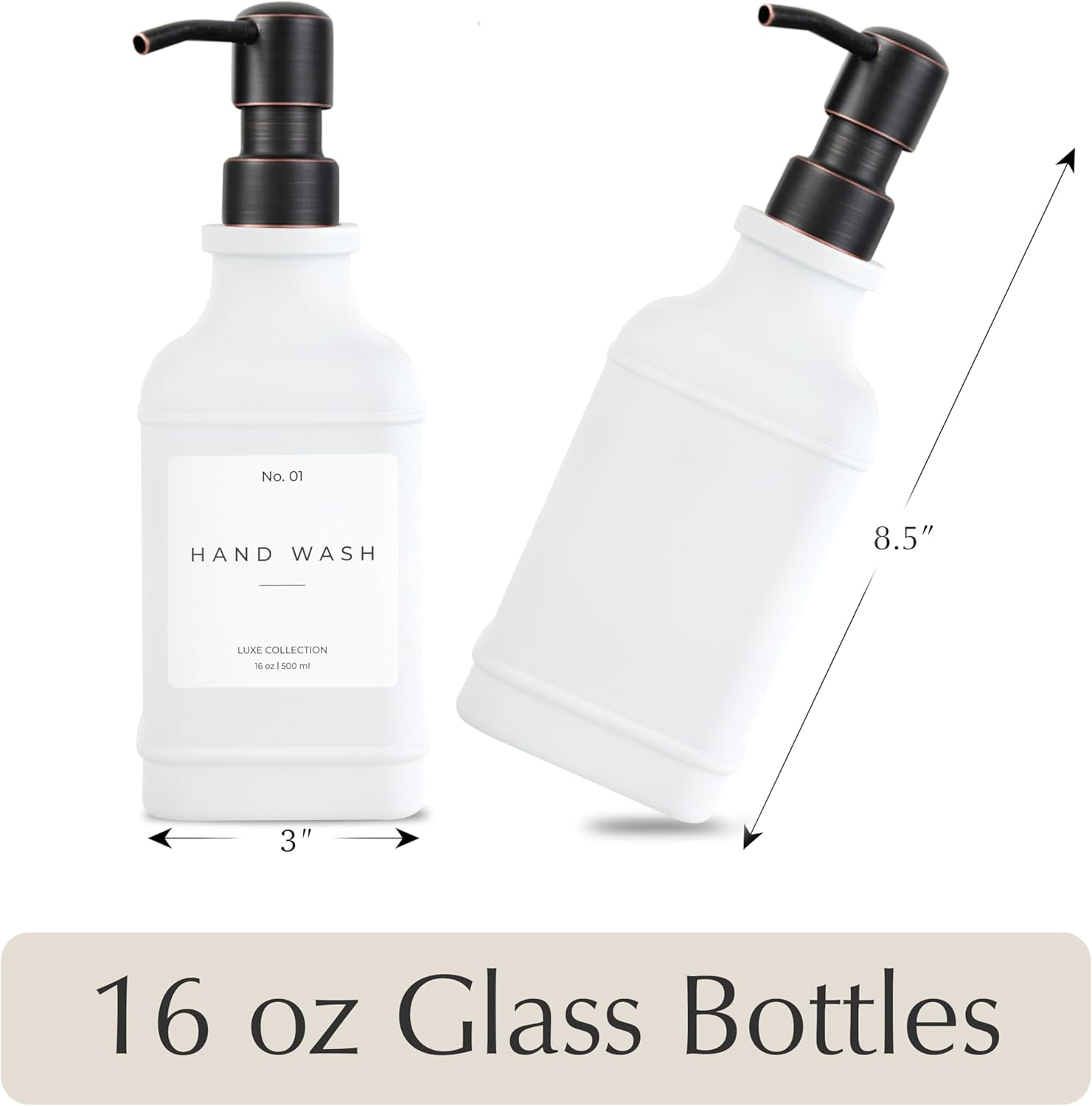 - ✅ PREMIUM QUALITY THAT LASTS: Designed to complement any space, these 16 oz glass soap dispensers are perfect for hand soap, dish soap, lotion, or shampoo. Ideal for sinks in your kitchen, bathroom, laundry room, or guest bath. Unlike dispensers that peel or break down, our bottles are made from thick, durable glass that resists wear and looks elegant on any countertop.
