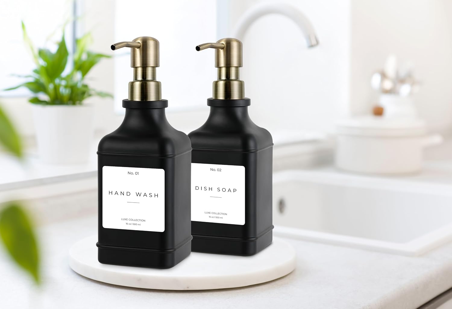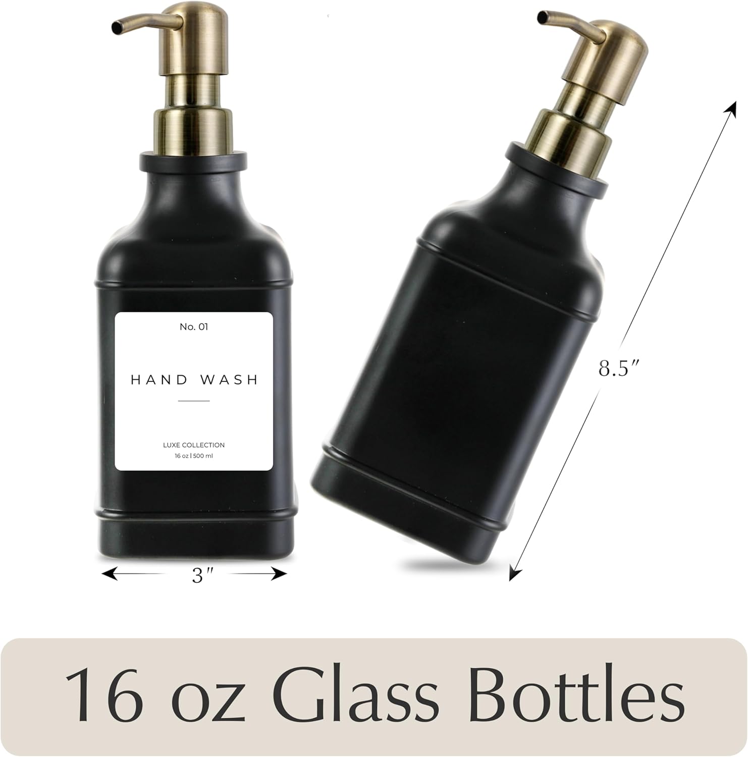 Emerson Essentials Soap Dispenser, Dish Soap Dispenser, Soap Bottle Bathroom Set, Hand Soap Farmhouse Home, Kitchen Soap Dispenser Set - Glass Soap Dispenser with Pump and Labels, 16 Oz, 2 Set
