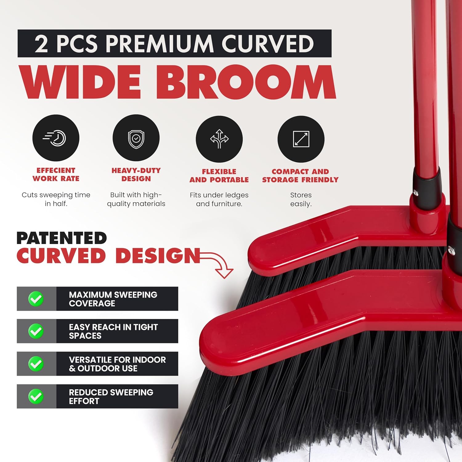 Da Vinci Curved Angle Broom (2) - Sturdy Wide Broom for Indoor/Outdoor Sweeping, Heavy Duty Steel Telescopic Handle, Durable PVC Bristles, Ideal for Pet Hair, Dust, Kitchen & Rough Surfaces