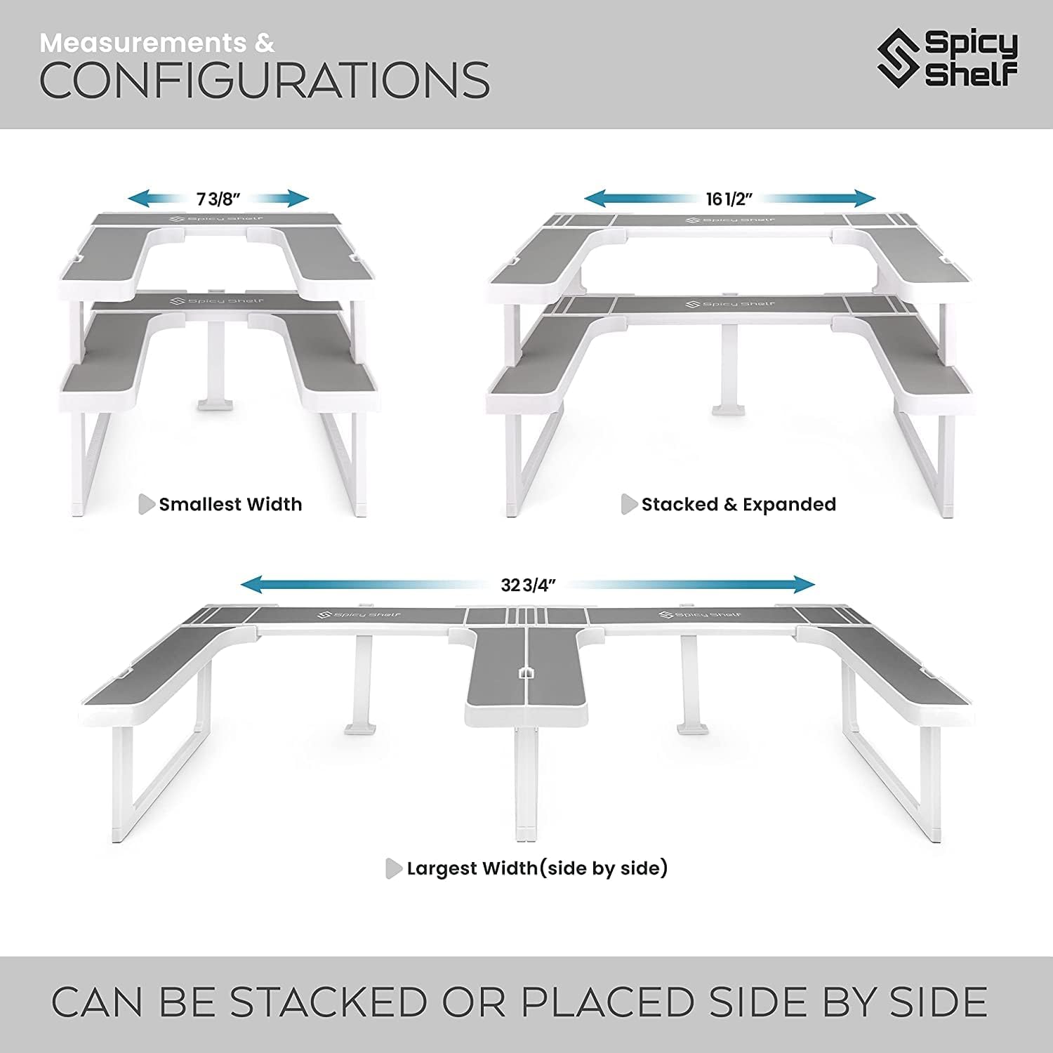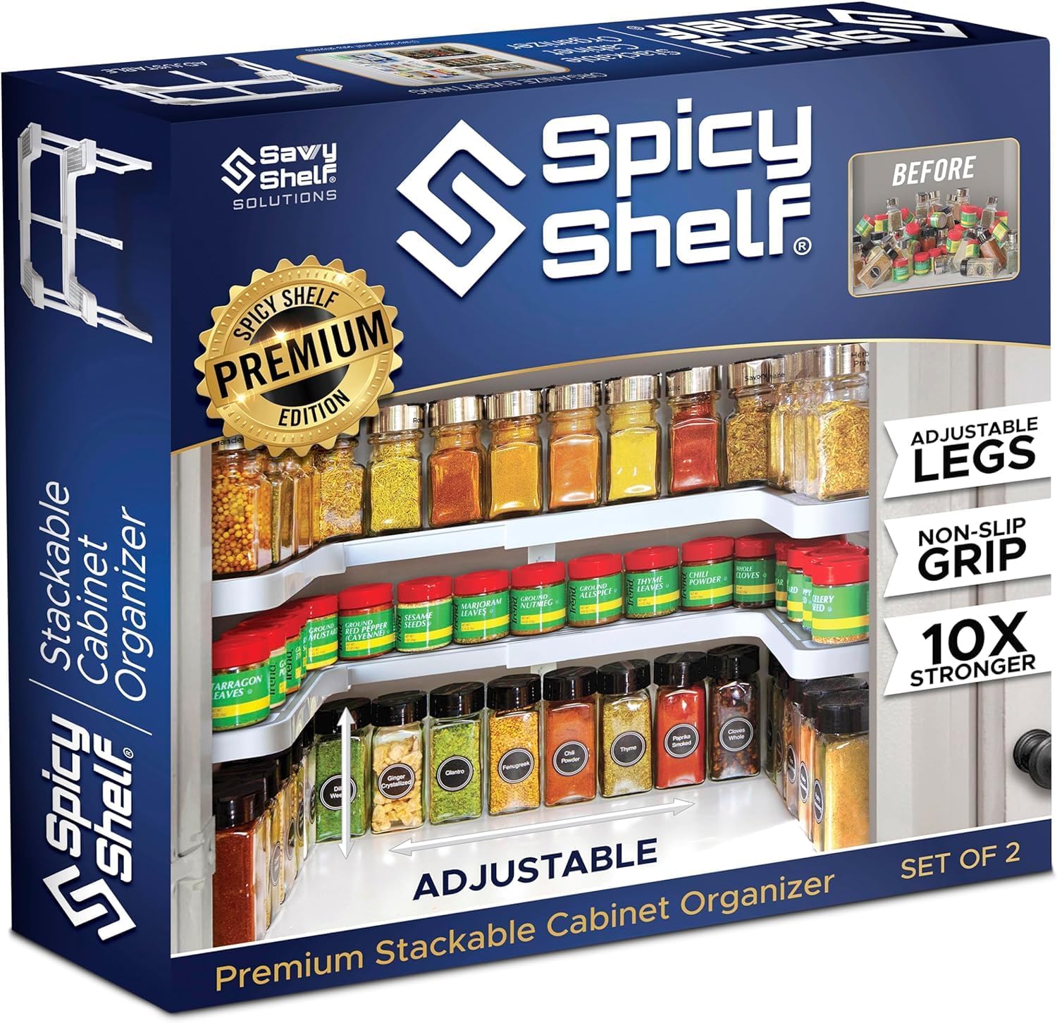Spicy Shelf Premium – Expandable 2-Tier Spice Rack Organizer for Cabinets & Pantry – Adjustable Stackable Kitchen Seasoning Organizer – Strong Non-Slip Cabinet Organizer for Spices, Bottles & More