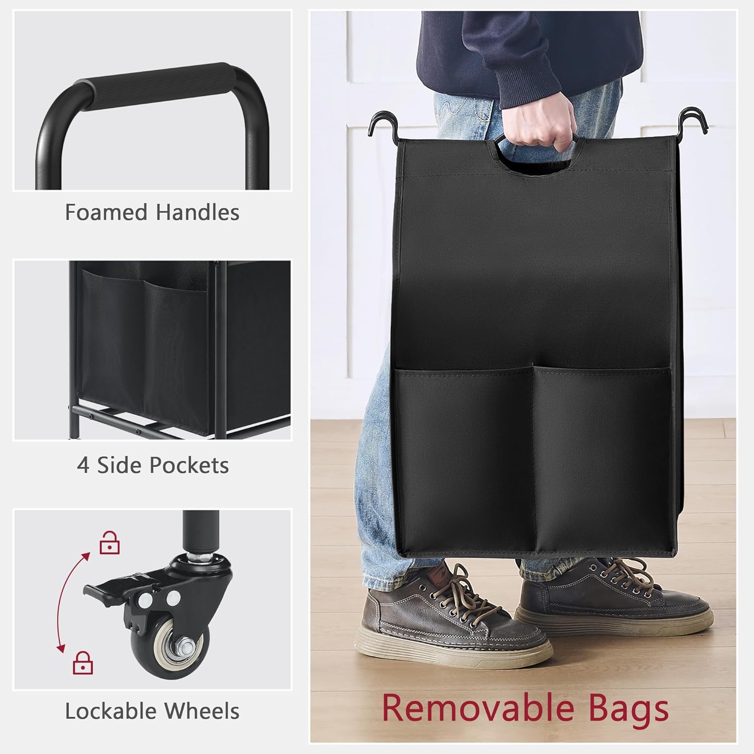 • Efficient Sorting Helper: The rolling laundry sorter comes with 5 separate laundry bags, and the clothes separation bags of different colors allow you to easily sort dark and light clothes. Simply use the two metal handles to remove the laundry bags individually from the laundry sorter.