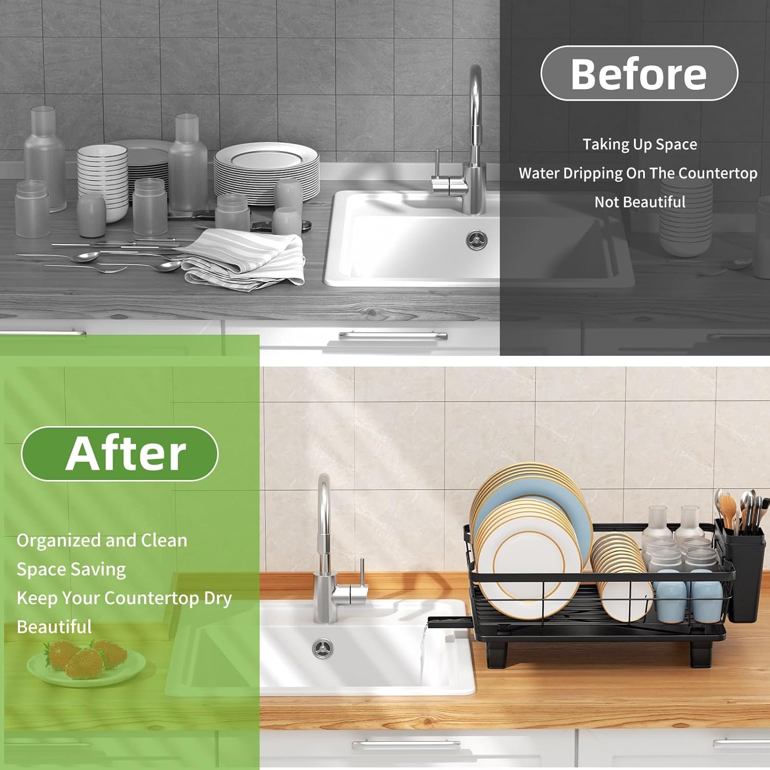 • Sturdy and Durable: DMTXCRP modern dish drying rack is made of high-quality stainless steel, which can effectively prevent rust and deformation. This kitchen dish dryer consists of a utensil holder, a dish rack, and a drainboard set, with a stable and durable structure. Cleaning is also very easy.