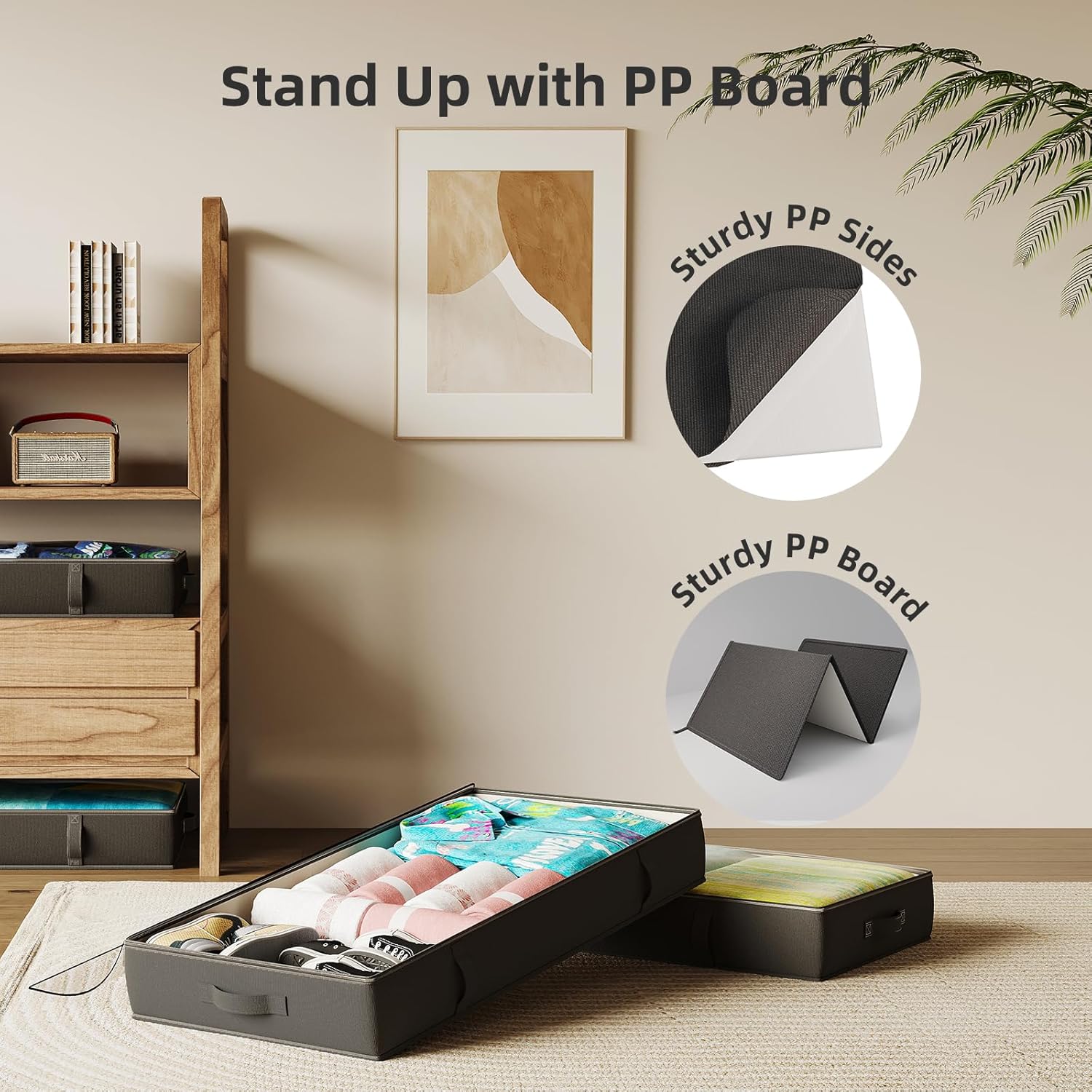 2-Pack Under Bed Storage, 6 Inches Tall Closet Organizers and Storage Bins with Sturdy Sidewalls/Bottom/4 Handles, Black