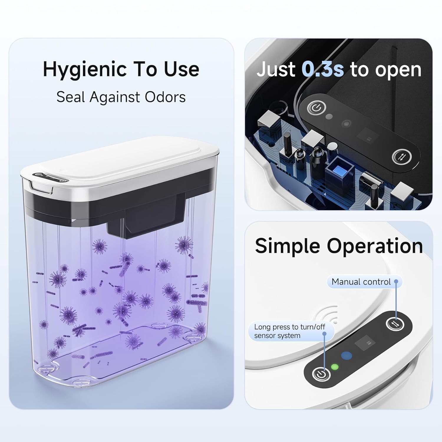 • 【Perfect for Narrow Spaces】The slim design of our smart trash can make it ideal for small spaces, fitting perfectly into corners and narrow areas in office, bedroom and bathroom, etc. Get it now to improve the space utilization!