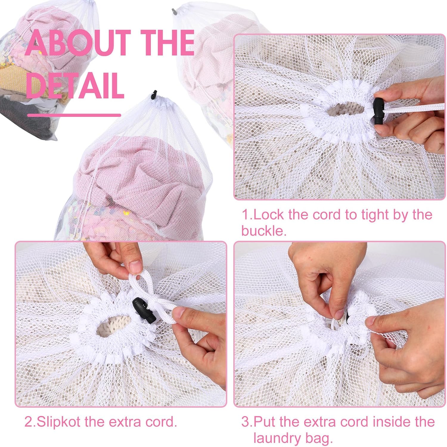 • Drawstring Locking Closure: the mesh bag has a locking buckle and drawstring buckle to prevent overflow; If you are using them as a laundry bag, tuck the buttons inside the bag to prevent the drawstring from loosening in the washing machine
