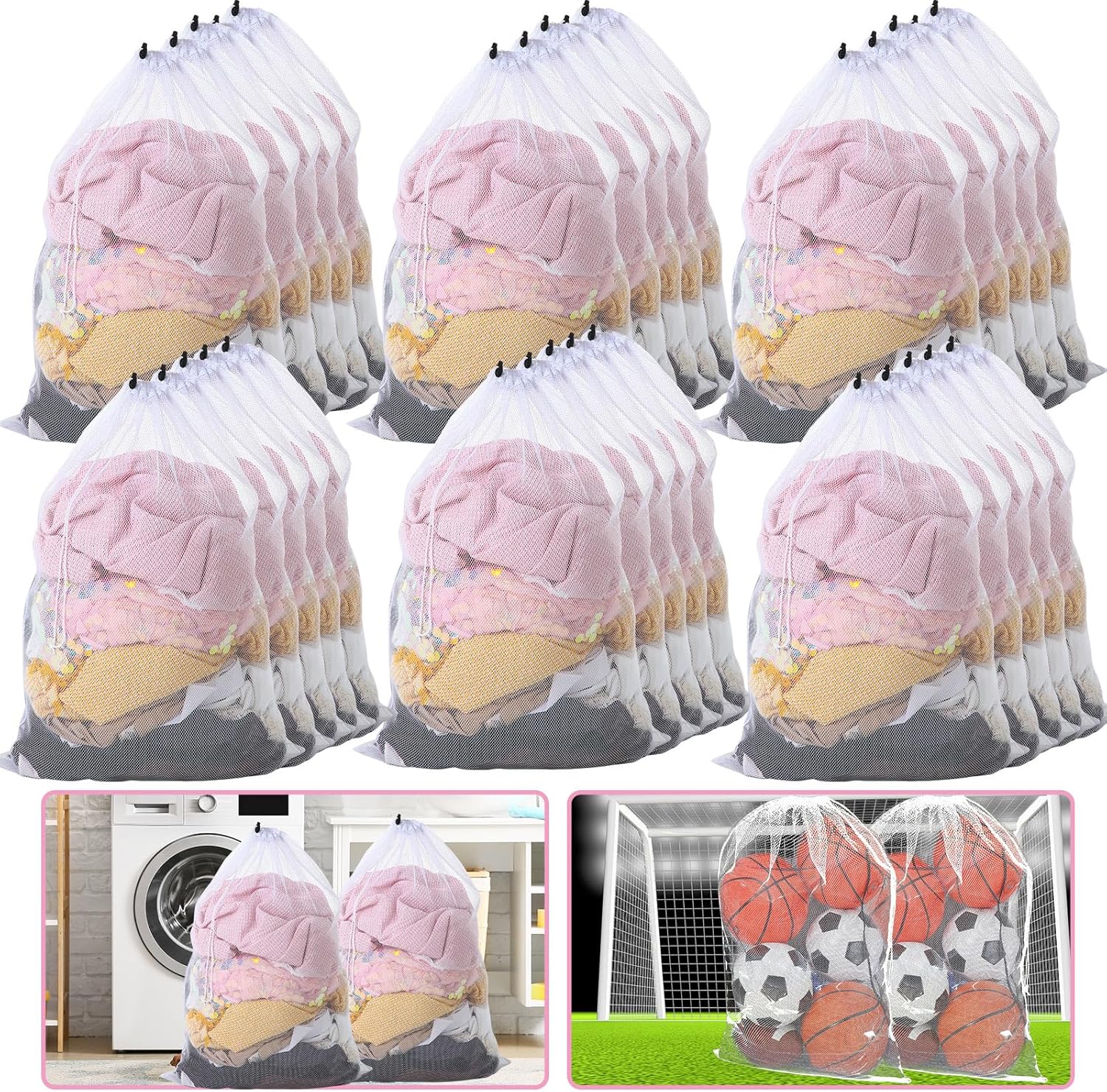 Berlune 30 Pack 24 x 36 Inches Large Mesh Bags for Laundry, Wash bags, Sturdy Mesh Material Closed with Drawstring, Factory, University, Dormitory, Travel and Apartment Dweller (White)