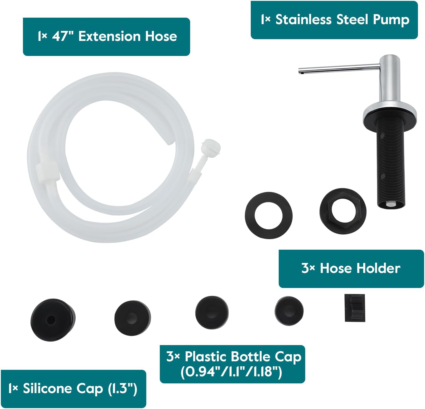 • Material: Our soap dispenser for kitchen sink is made of commercial grade 304 stainless steel, its finish makes it resistant to corrosion and rust