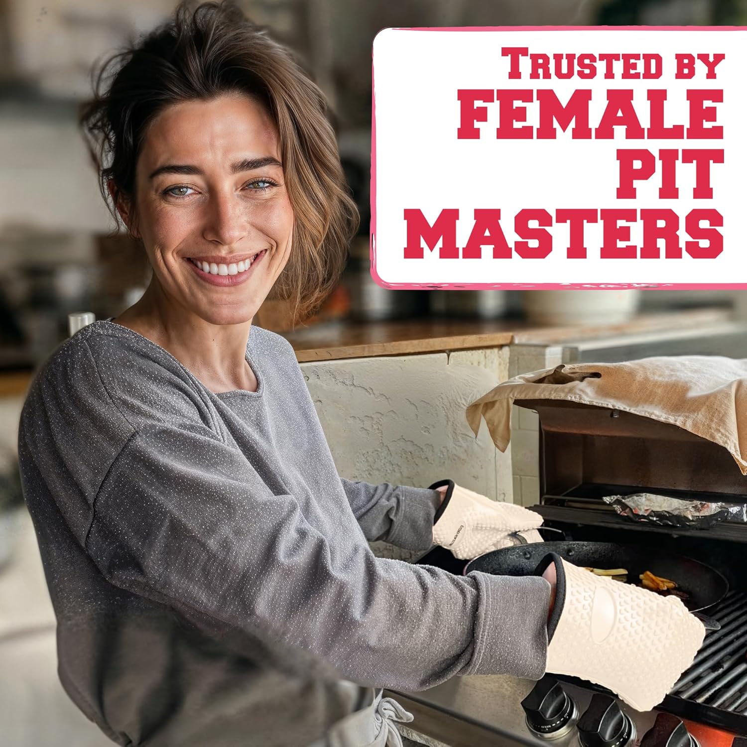 KITCHEN PERFECTION XL Silicone Smoker Oven Gloves for Women -Extreme Heat Resistant BBQ Gloves -Handle Hot Food Right on Your Grill Fryer&Pit|Waterproof Grilling Cooking Mitts|Superior Set+3 Bonuses