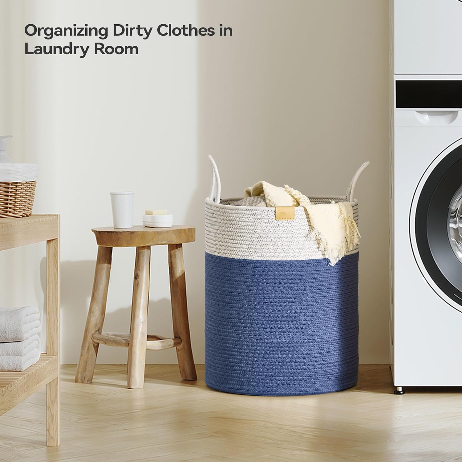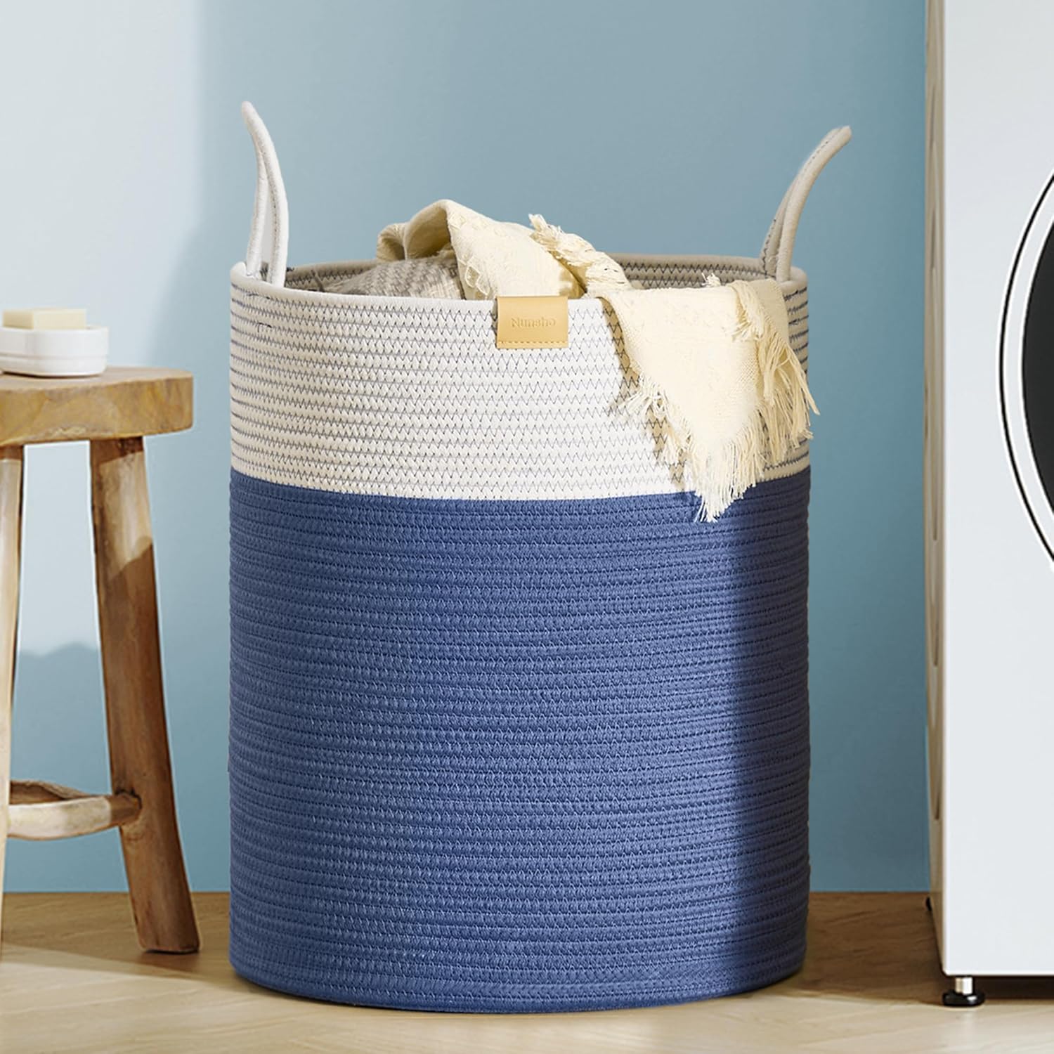 Laundry Hamper 62L,Large Laundry Basket for Clothes,Decorative Storage Basket for Blankets,Cotton Rope Woven basket for bedroom,Navy Blue