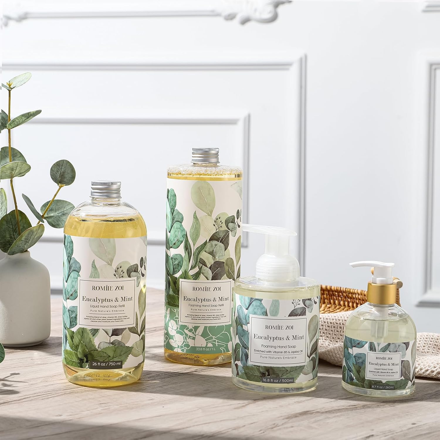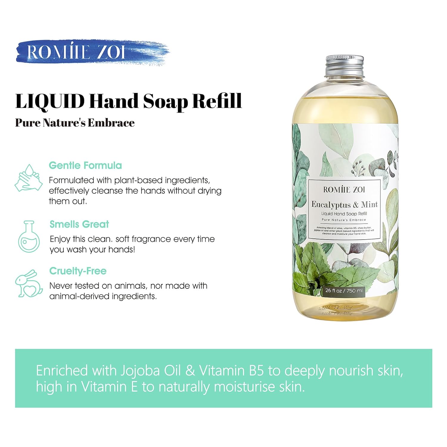 ROMIIE ZOI Liquid Hand Soap Refills, Eucalyptus & Mint, Gentle & Moisturizing Formula, 750 ML/ 26 FL OZ