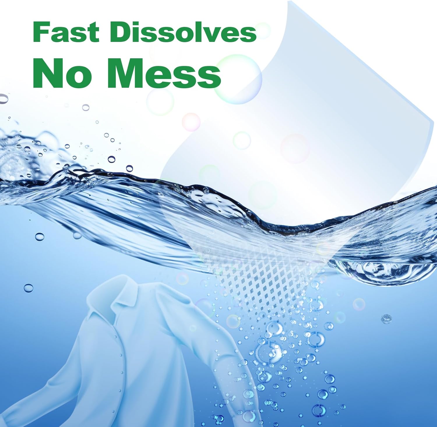 • Ultra-Concentrated Cleaning: Experience the cleaning power of ultra-concentration with each sheet. Each laundry detergent sheet is formulated with deep cleaning ingredients to easily remove tough stains including juice, oil, Sauce and dirt. These detergent sheets dissolve quickly, leaving your laundry fresh and spotless without any harm to the fabrics