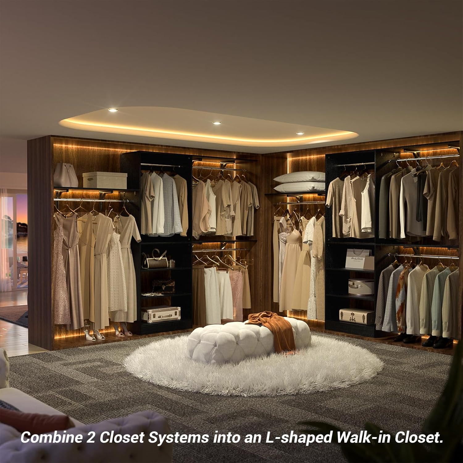 - 【Warranty and About Install】The iSunirm 96'' closet system aims for quality and offers 1-Year Guarantee and professional after-sales support. All the installation assembly hardware is included, as the quality is good, and the weight of the package is about 100 lbs, we suggest 2 people install this item together. If the hardware components are missing or defective, please contact us for support, we will solve the problem for you in 24 hours.