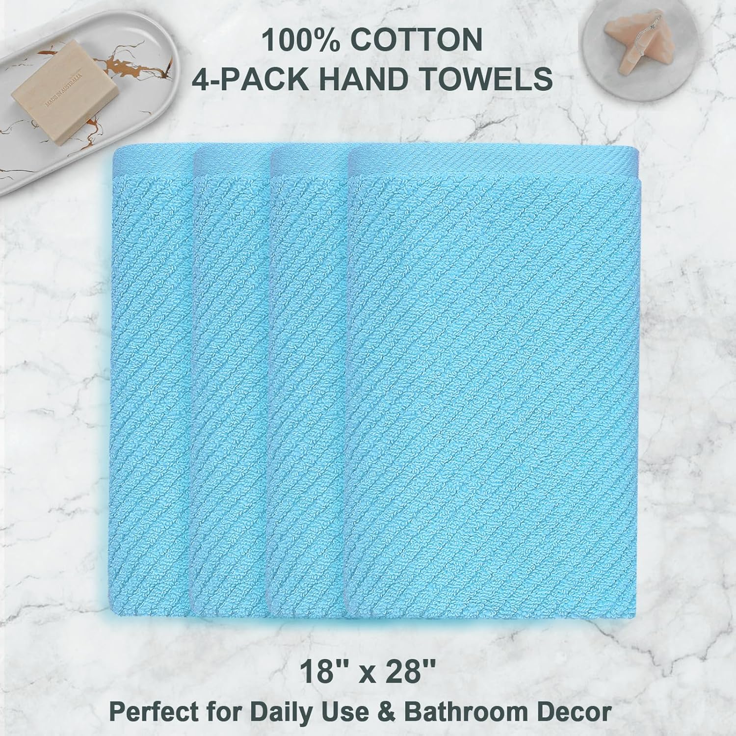 VOOVA & MOVAS Hand Towels for Bathroom Set of 4,Large 18"x 28" - 100% Cotton | Lightweight | Thick | Quick Dry | Soft | Absorbent, Bath Hand Towels, Bathroom Essentials, Blue