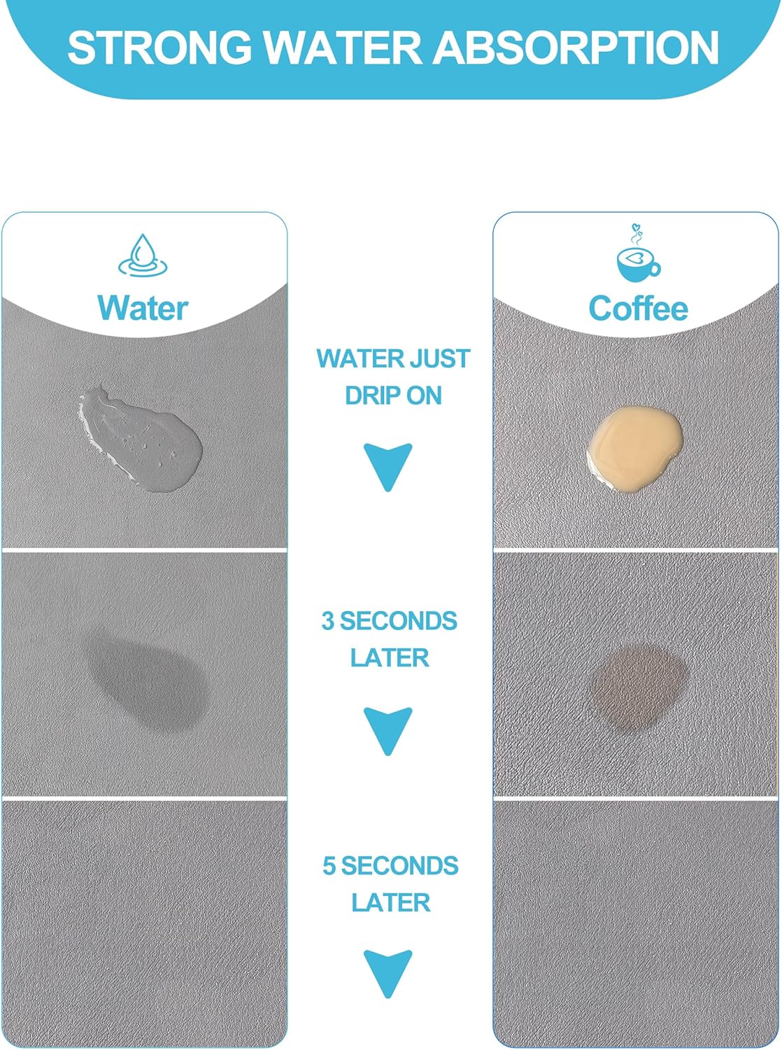 • SUPER ABSORBENT: The microfiber tableware dish drying mat is made of high-absorbent nanomaterials. Special PU surface hide coffee stains, milk stains and any other dark messy stains well. In addition, the drying mat is thick enough to better protect countertops, tableware, and glassware from damage and contamination.