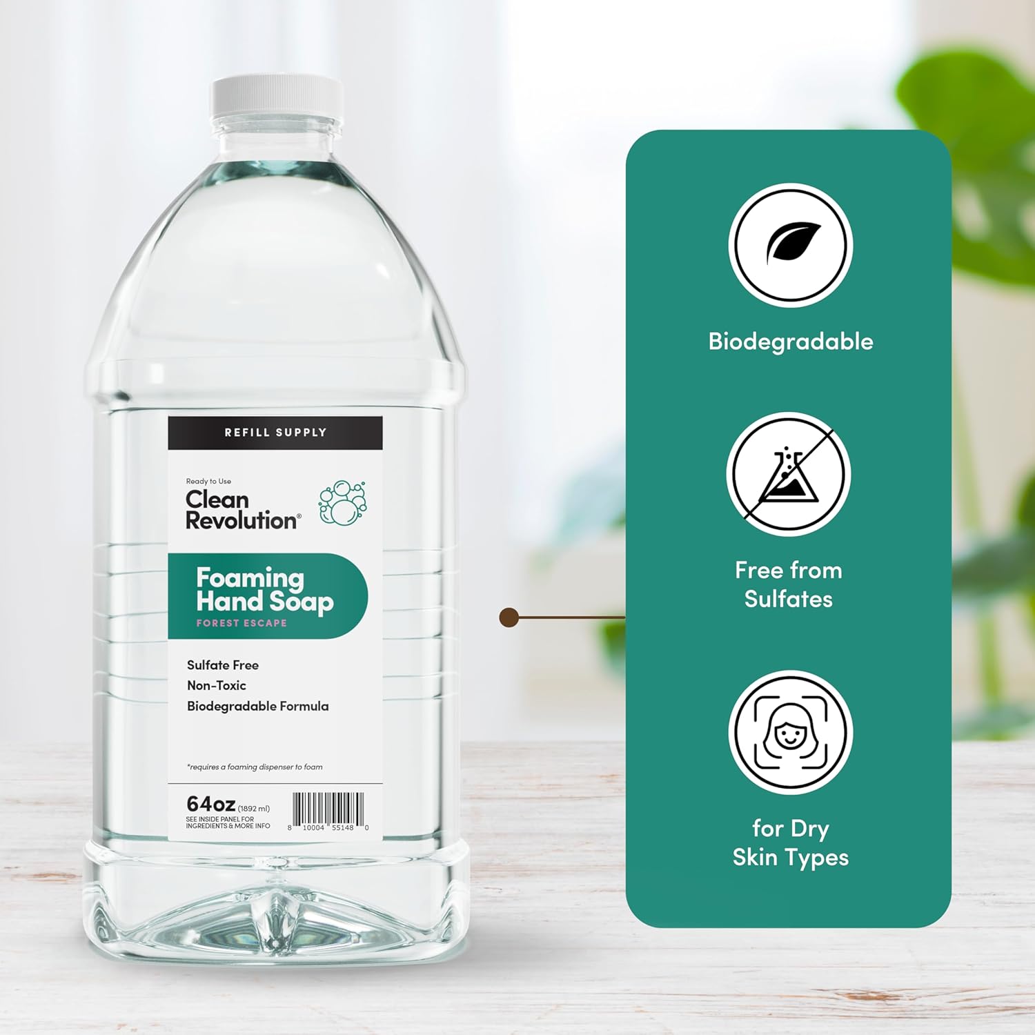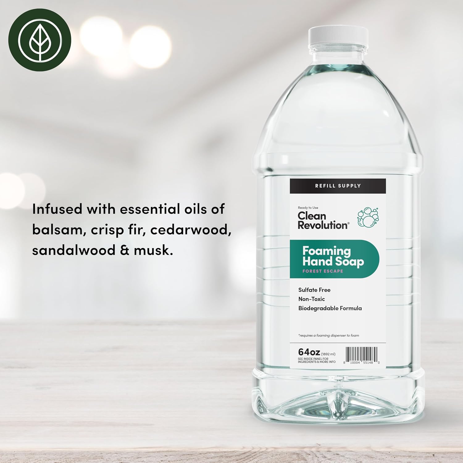Clean Revolution Foaming Hand Soap Refill Supply Container, Ready to Use Formula, Forest Escape Fragrance, 64 Fl Oz (Pack of 1)