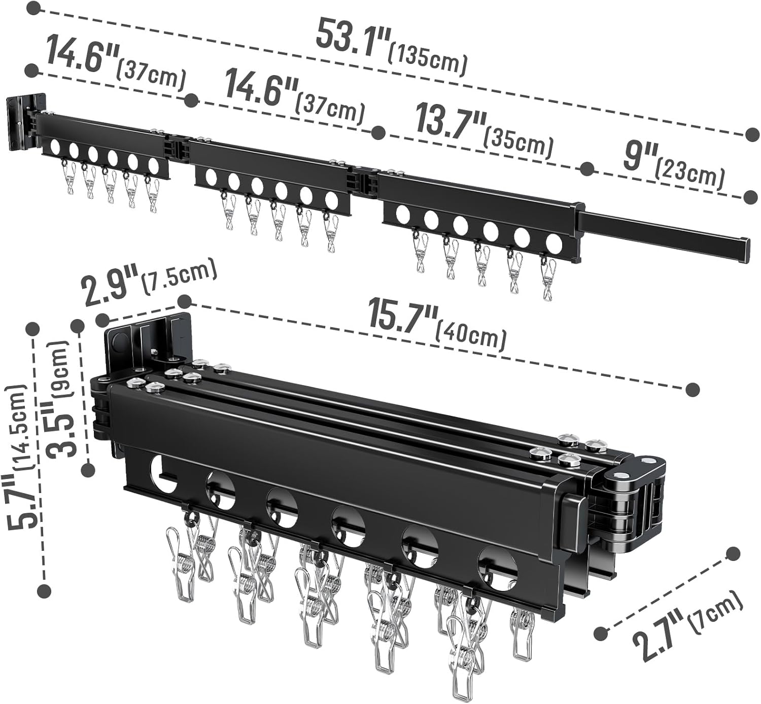 Clothes Drying Rack Foldable Wall Mounted Drying Rack 3 Fold Black-Laundry Drying Rack Durable Clothing Racks for Hanging Clothes
