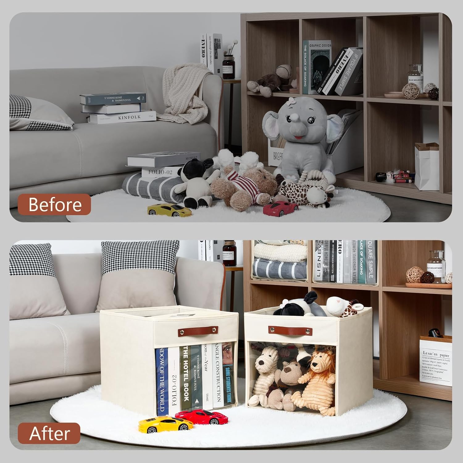 - 【Size Specification】Each clear cube storage bin is 13x13x15 inches, and the large fabric storage bins 13x15x13 set includes 4 boxes, giving you ample storage space. You can easily categorize your belongings based on your habits, and this fabric storage cubes will assist you in creating a more organized home.