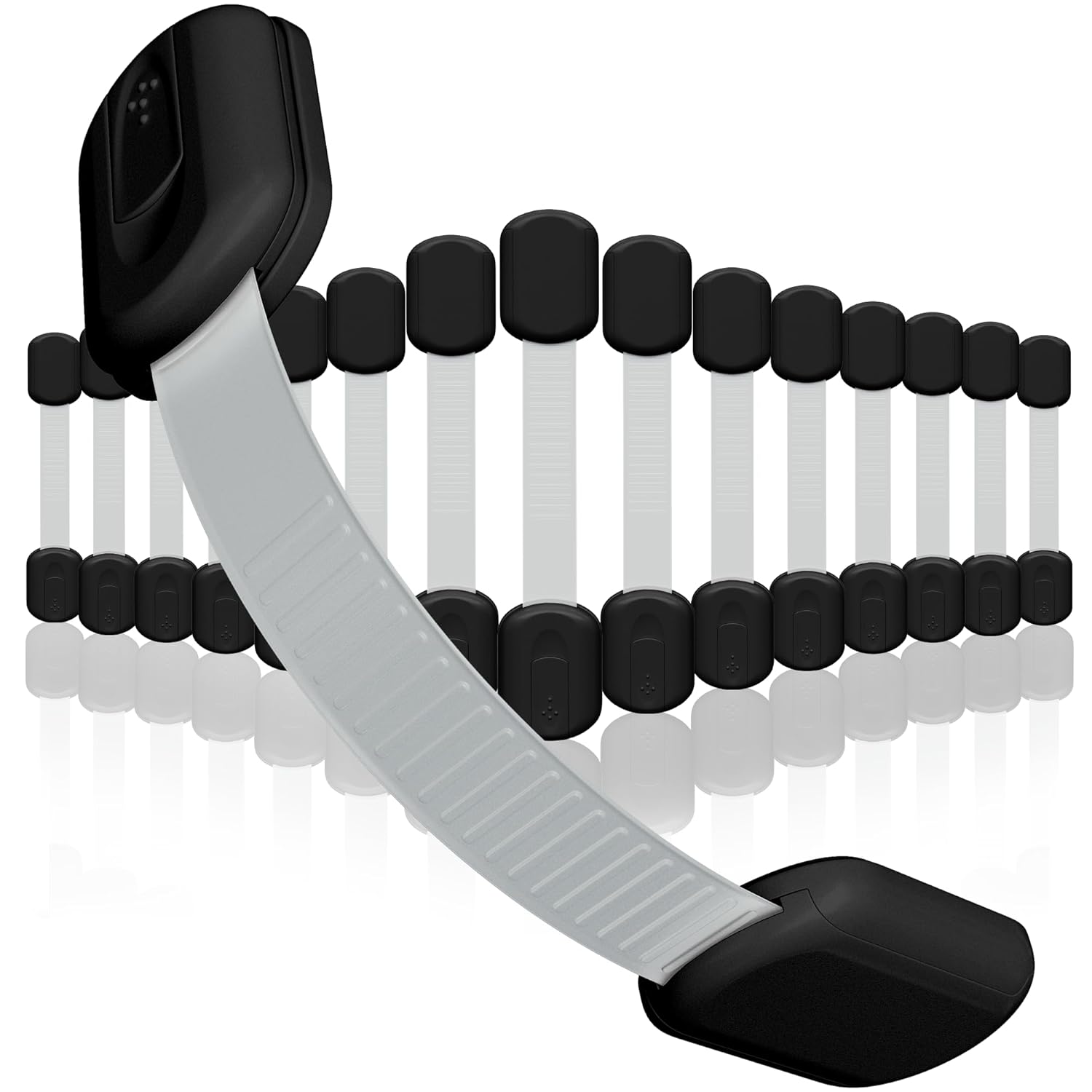 • 8 multi-purpose cabinet locks that has a high grade 3M adhesive. Flexible strap means you can bend around items from toilet seats to fridges