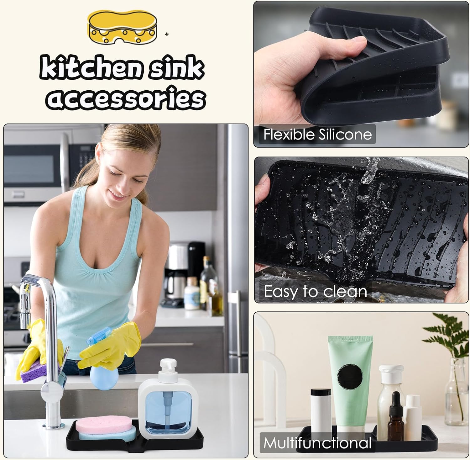 • ★Prevent Items From Sliding: The Silicone Sink Tray has a raised edge and an anti-skid base that prevent your items from sliding or falling off. You can keep your soap or sponge securely and firmly in place without worrying about them slipping into the sink or onto the floor.