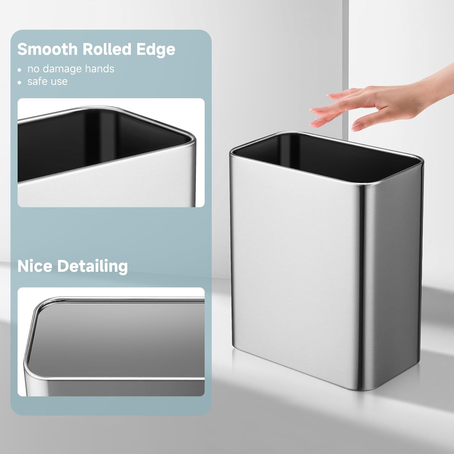 • 【No Lid Design】The open top allows you to throw trash effortlessly without touching the garbage can