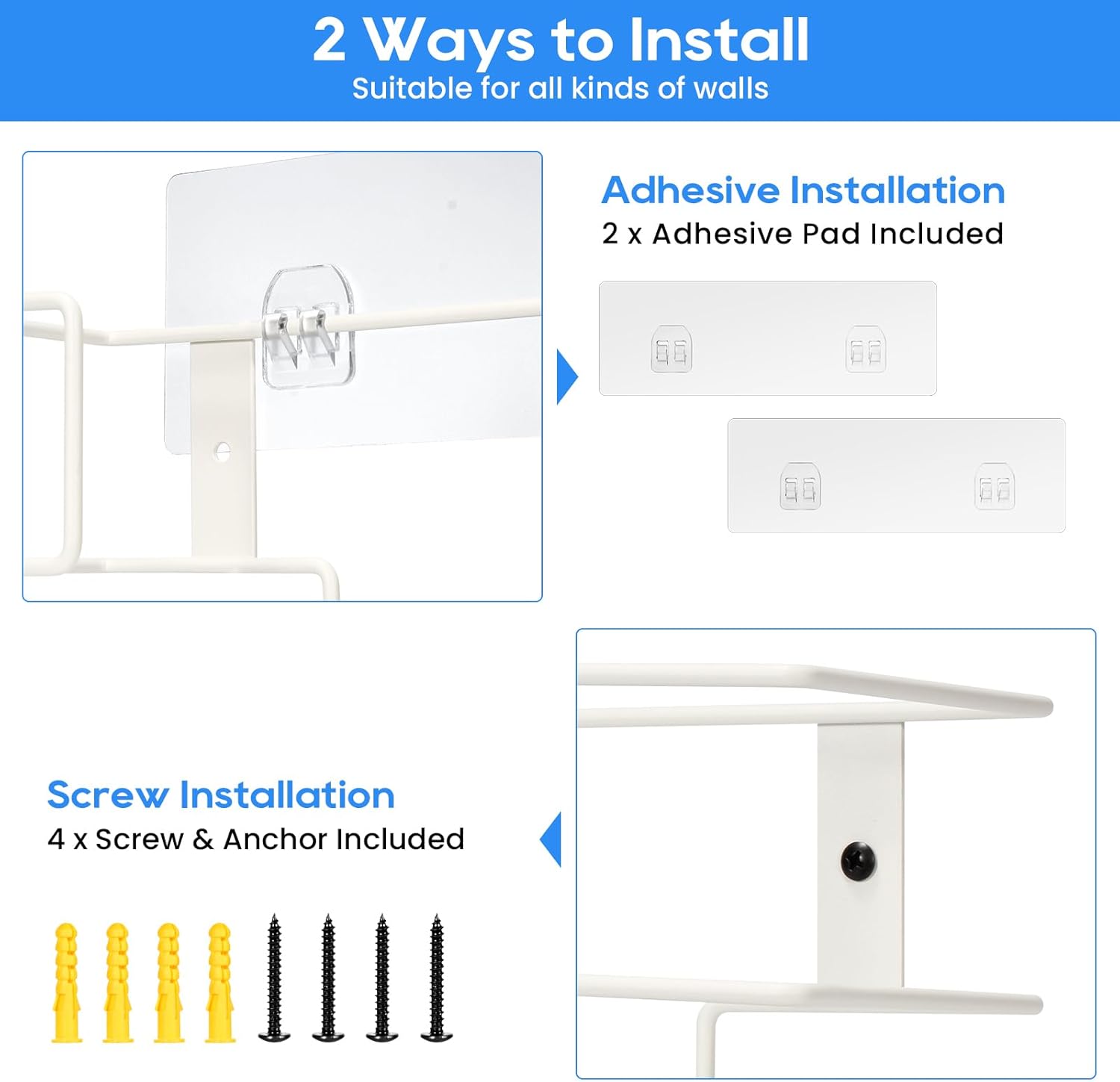 • 【Two Installation Methods】Comes with all mounting hardware, the glove rack can be mounted on the wall or cabinet door by adhesive hooks or screws, allowing you to choose the installation method according to the wall.