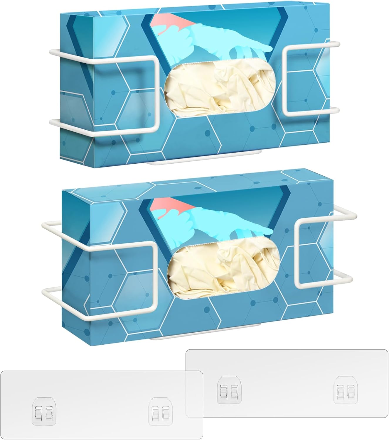 THYGIFTREE Glove Box Holder Wall Mount Dispenser, 2 Pack Metal Rack for Rubber Latex Disposable Gloves Facial Tissue, White