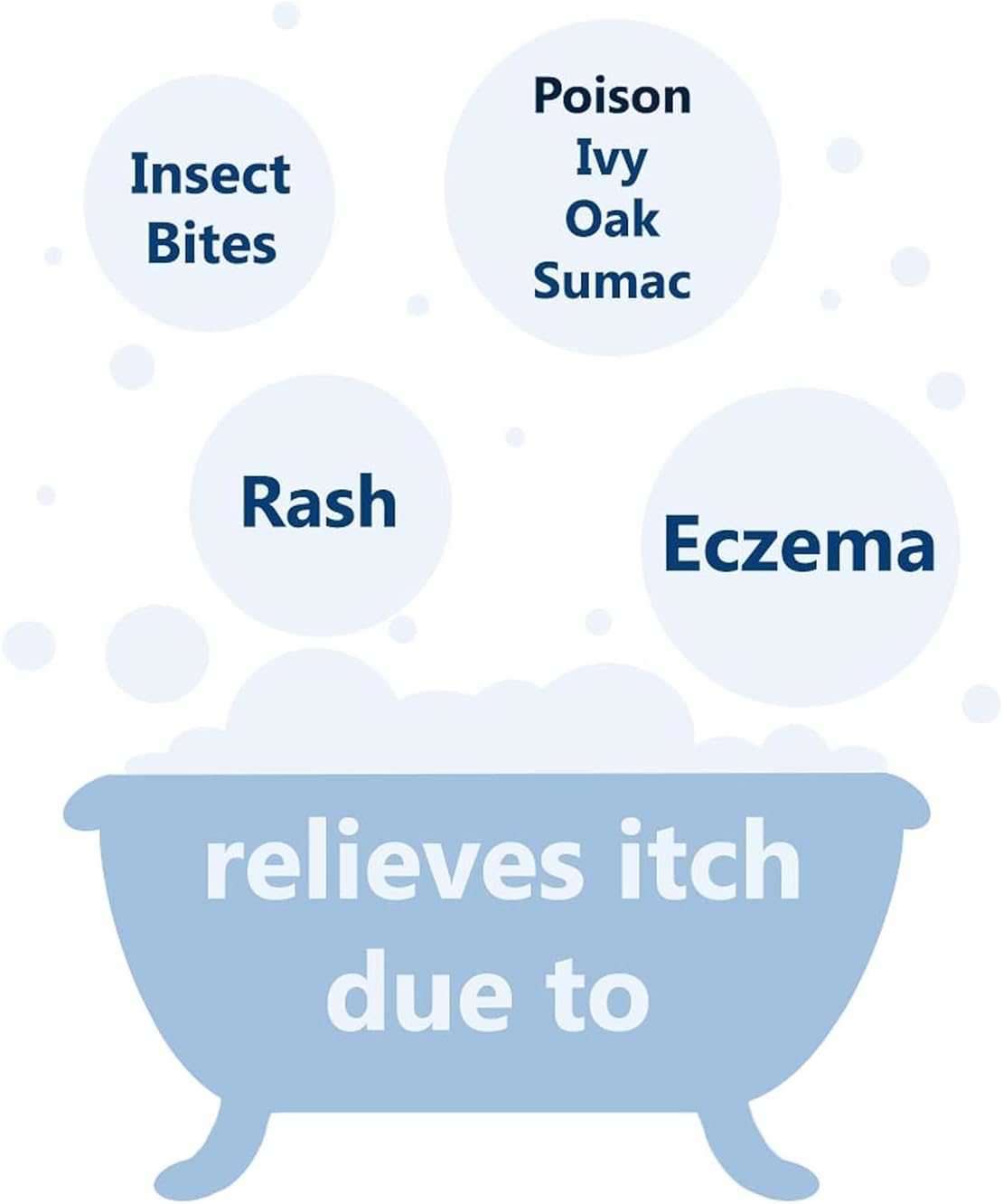 • This soothing 100% natural colloidal oatmeal bath soak is formulated to naturally soothe irritated skin due to poison ivy/oak/sumac, eczema, insect bites, rashes, sunburn, prickly heat, chicken pox and hives
