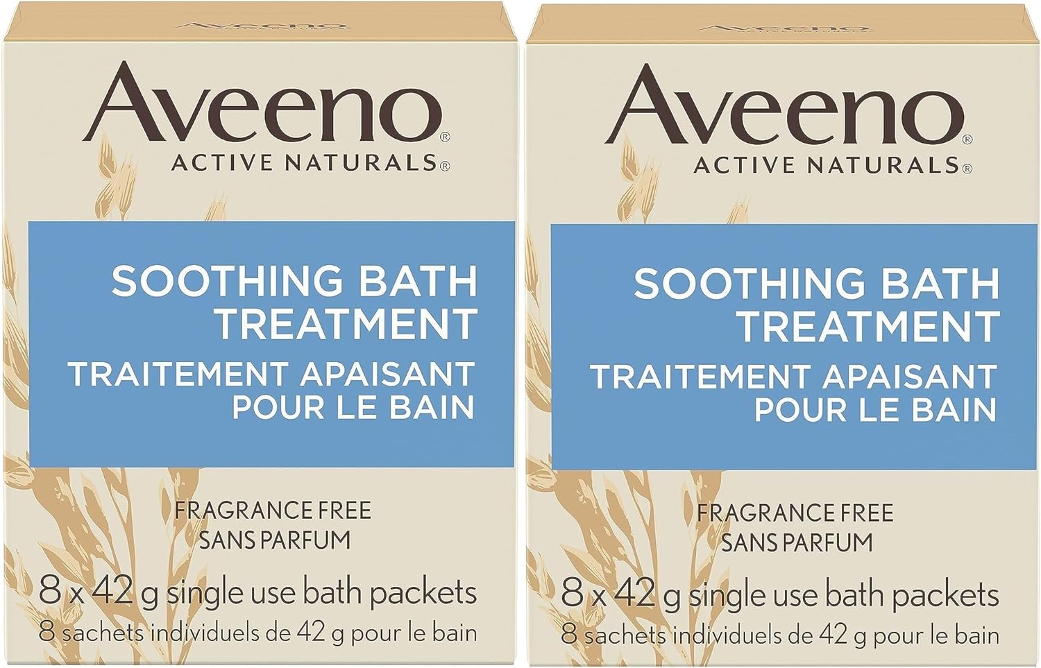 • 8-count of single-use, individually wrapped packets of Aveeno Fragrance-Free Soothing Bath Treatment with 100% Natural Colloidal Oatmeal for temporary protection and relief of dry, itchy, and irritated skin