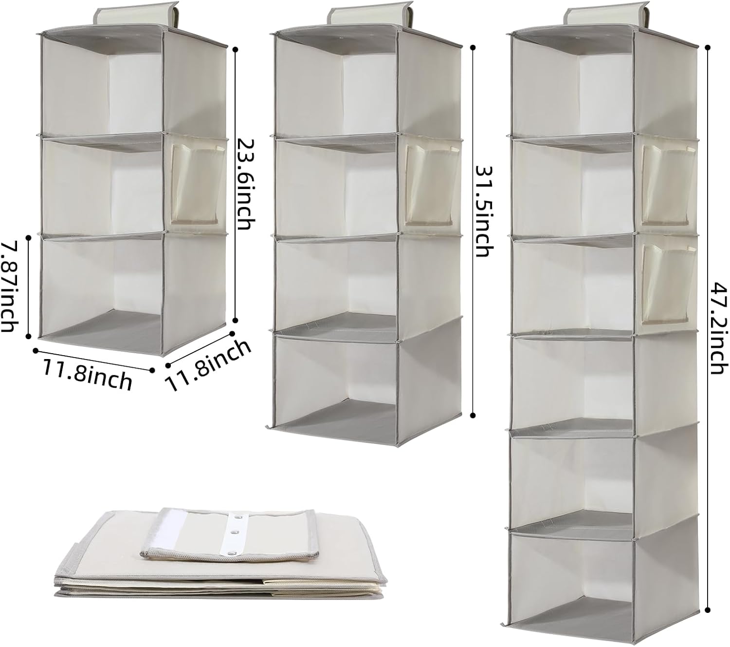 - 【Product Dimensions】This overall size is 11.8"(L)*11.8"(W)*23.6"(H).Each unit is 11.8"(L)*11.8"(W)*7.87"(H).Before buying, it is recommended to measure the distance between your closet rod and the floor to see which model would be best for you.