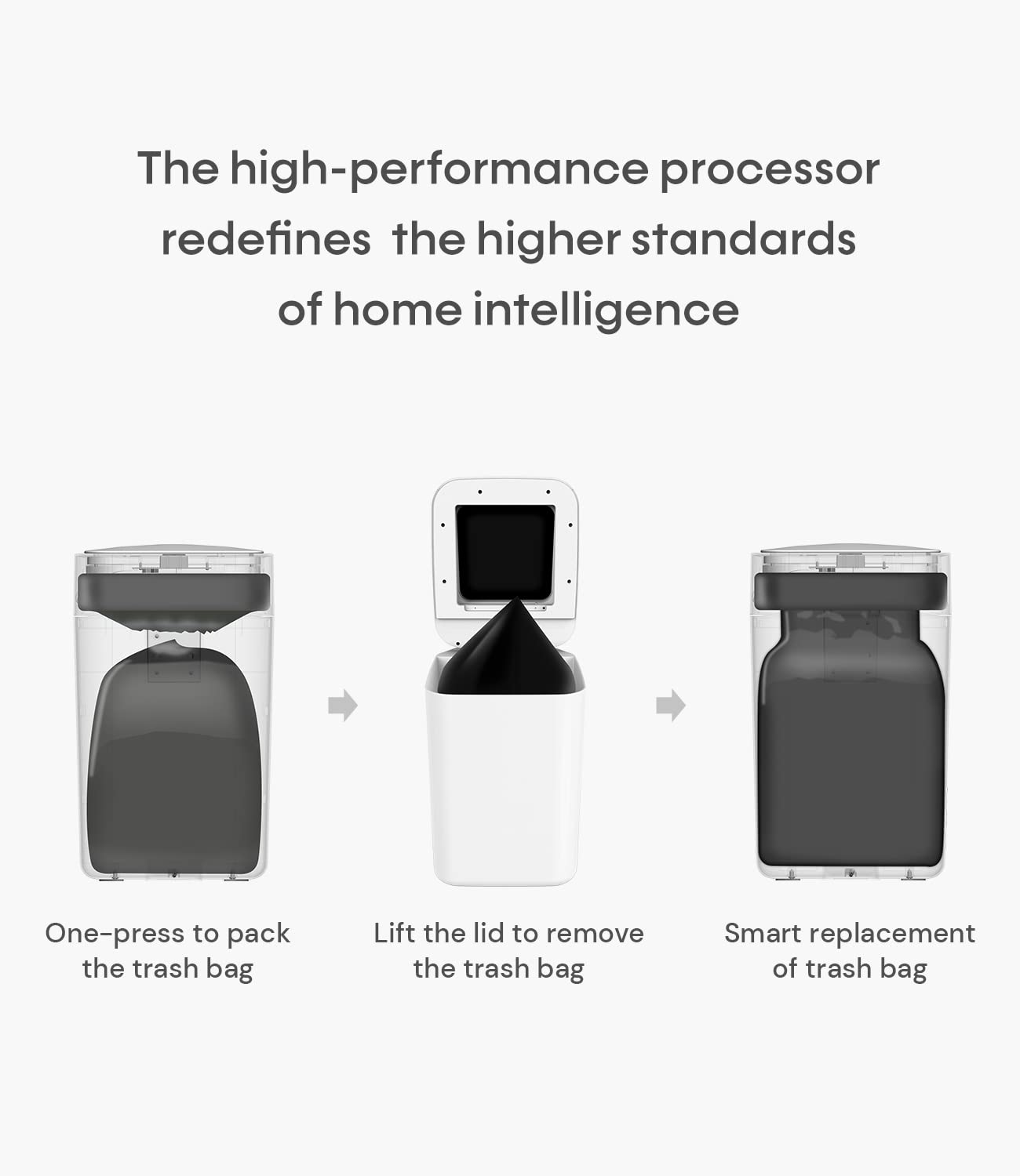 - 【Overload Sealing】It will automatically sense the location of the excess trash that exceeds the trash can and adapt to the height of trash and extend the trash bag to seal. Compared with T AIR X and T Air Lite, it has no pull strap and can automatically open the lid for overload packing.