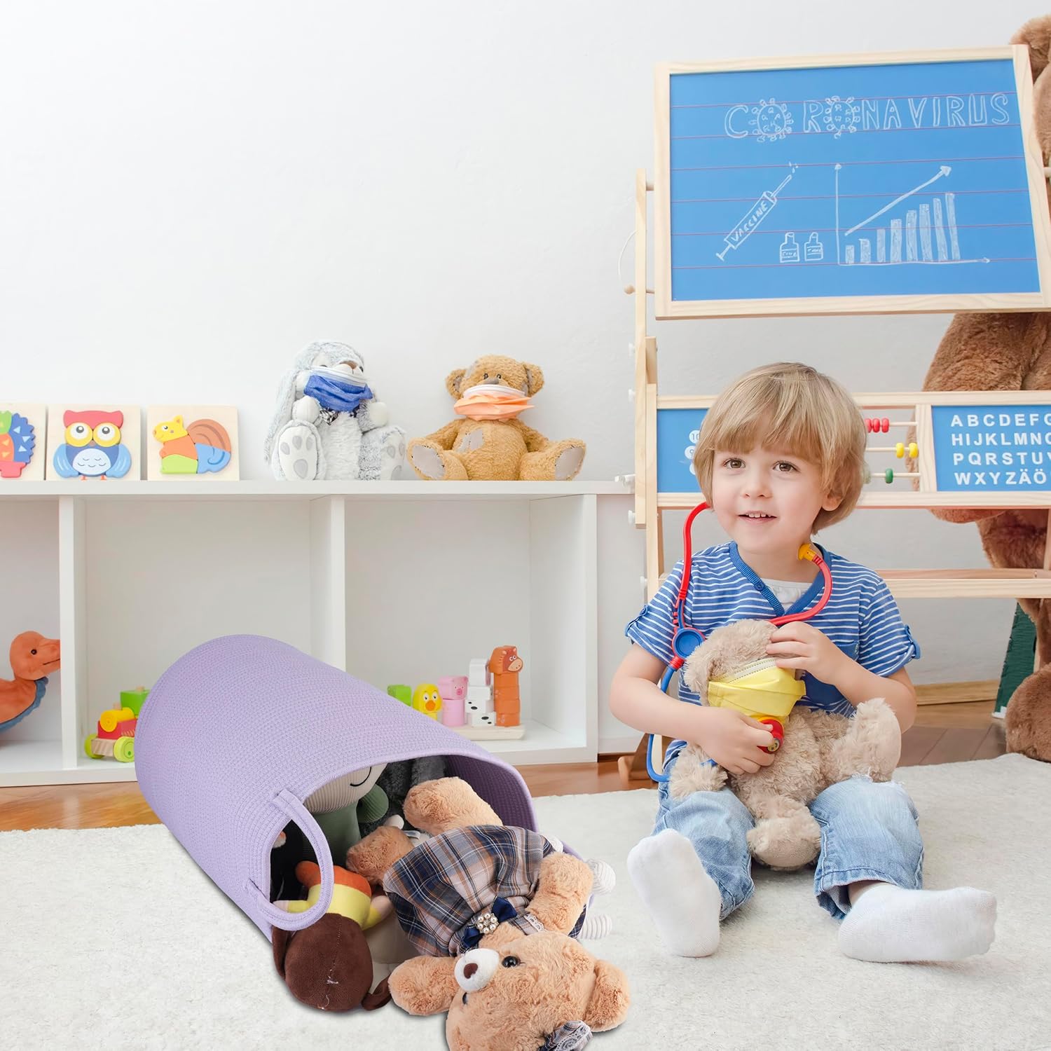 Cotton Rope Laundry Basket Hamper for Clothes Woven Storage Basket for Living Room Bedroom Boho Tall Rope Baskets for Blanket Toys Pillow Towels Baby Nursery Hamper Bin Large purple