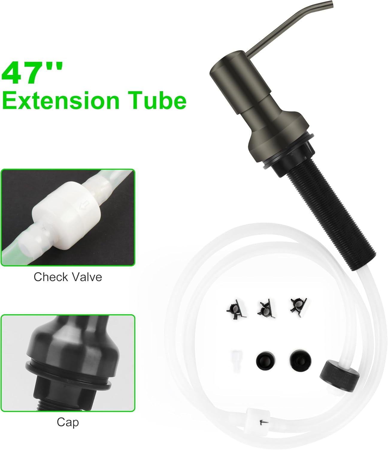 • No Need To Refill Every Week: This sink soap dispenser comes with a 47” extension tube that goes directly into an original large dish soap bottle, so you can skip the messy process of refilling the small bottle from the top every week.