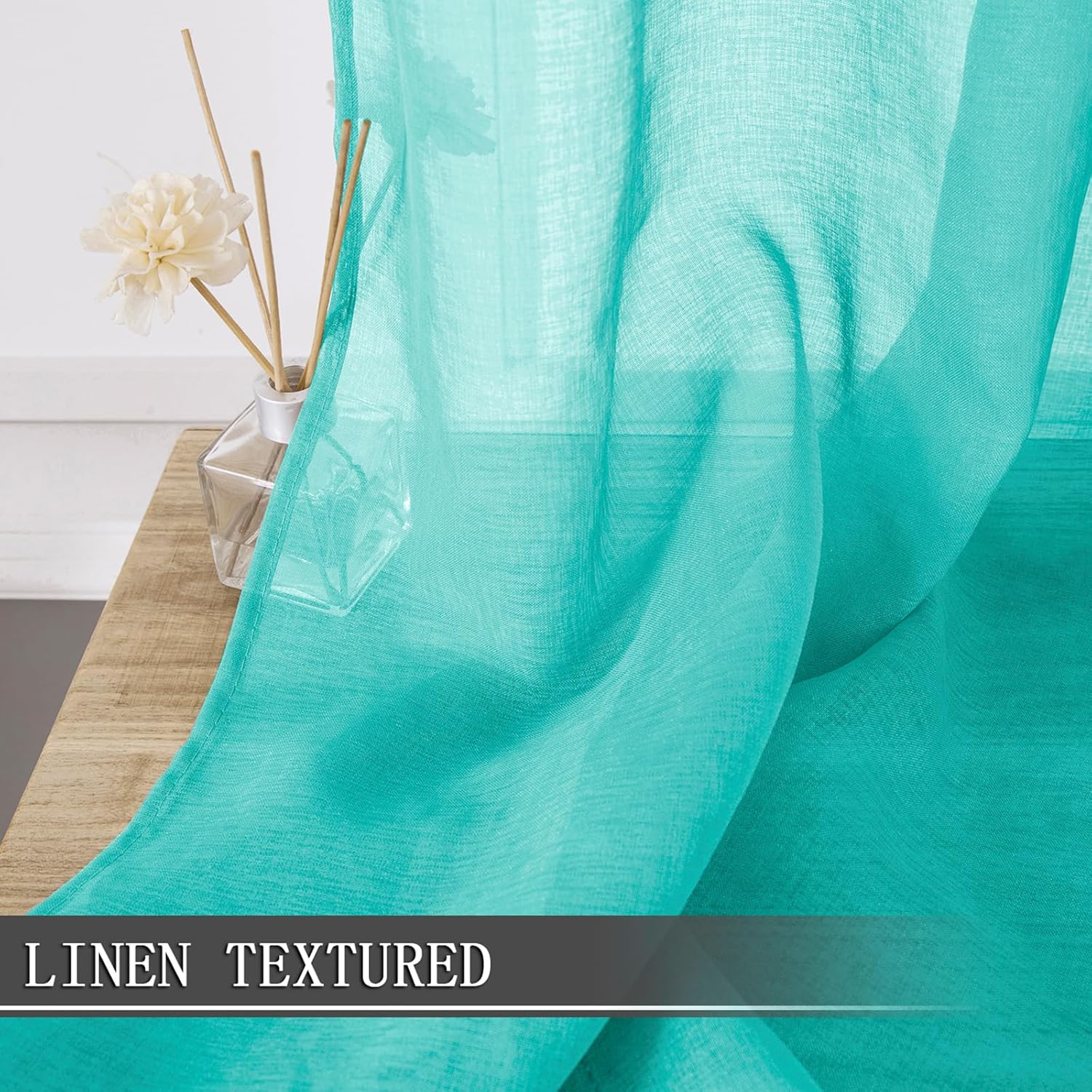 Tollpiz Short Sheer Curtain Living Room Linen Textured Curtains Sheer Light Filtering Voile Rod Pocket Curtain for Bedroom, 38 x 54 inches Long, Aqua Blue, Set of 2 Panels