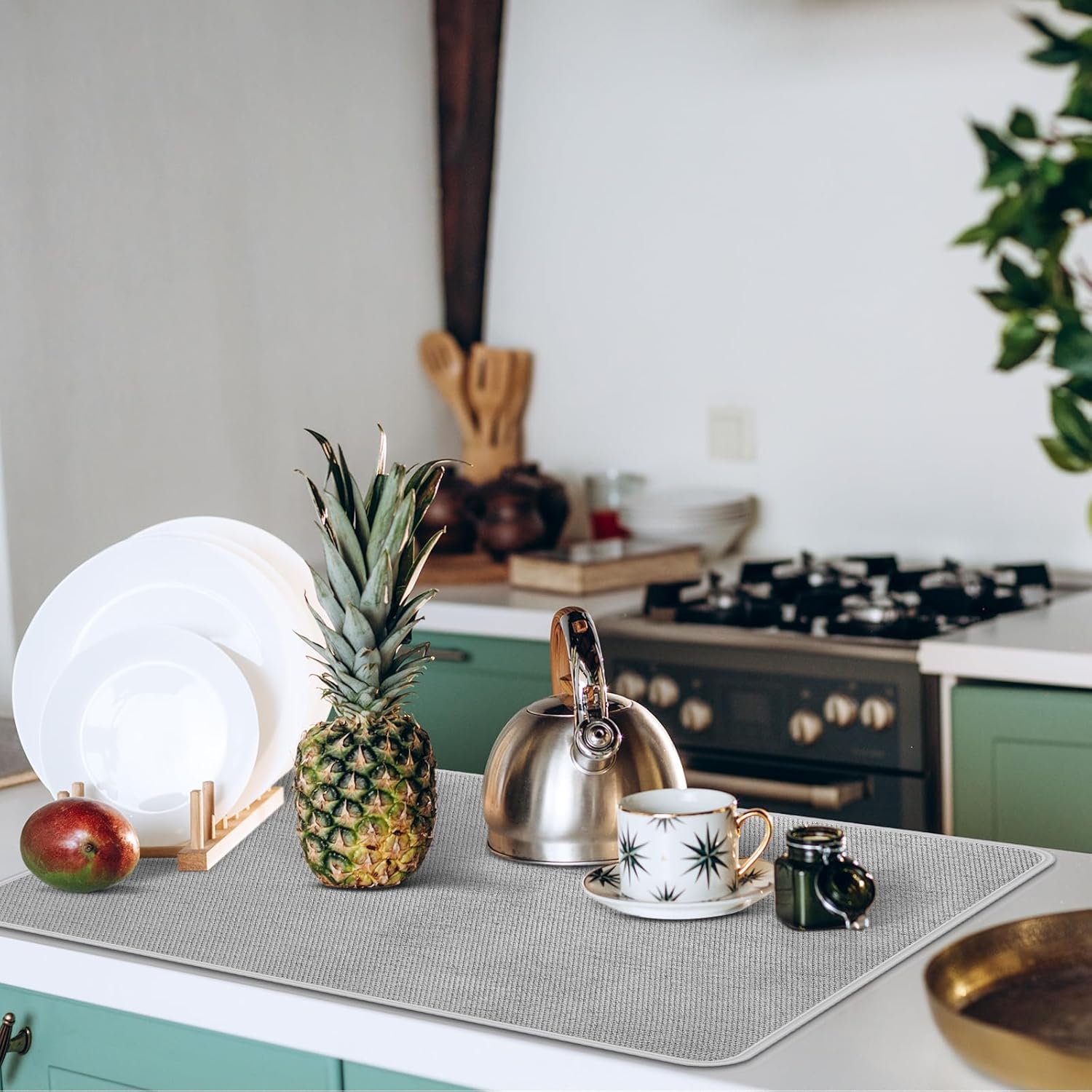 • Multifunctional Features: our multifunctional dish drying mats are impressive not only for drying dishes but also for numerous other kitchen tasks; They can be applied to drain cleaned vegetables, as insulation pads on dining tables, protective pads on washing machines, or pet feeding pads