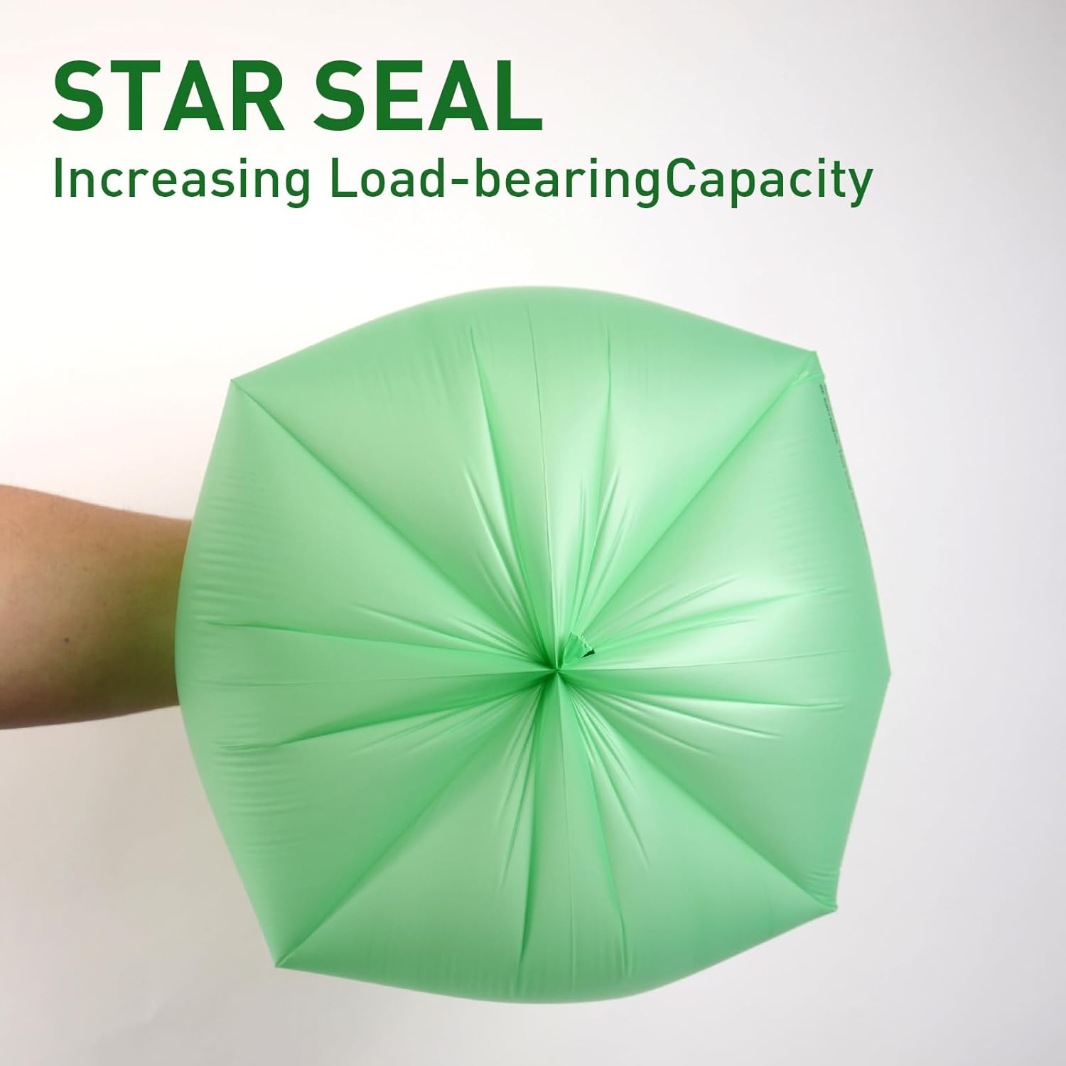• [MULTI-USE COMPOSTABLE BAGS 33 GALLON TALL KITCHEN] Octagonal bottom design reliably prevents leakage. The bottom of the large compostable bags are integrally formed, which is convenient for collecting garbage and keeping it clean. This Compostable trash bag is suitable for yard, Kitchen, car trash, etc.