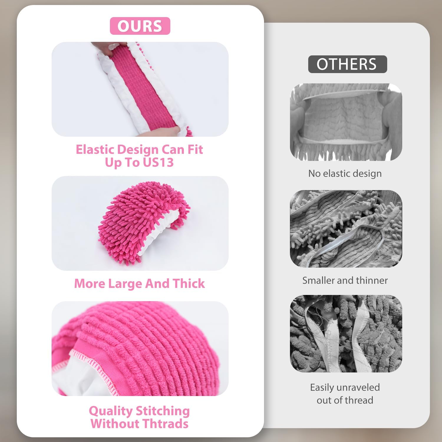 • 【Multifunctional & multi size】mopping floors, cleaning glass or pet hair, even as a shoe cover or replacement for mop head.Fantastic elasticity slippers shoes cover, two sizes offer fit a size 6-13 house shoe easily.