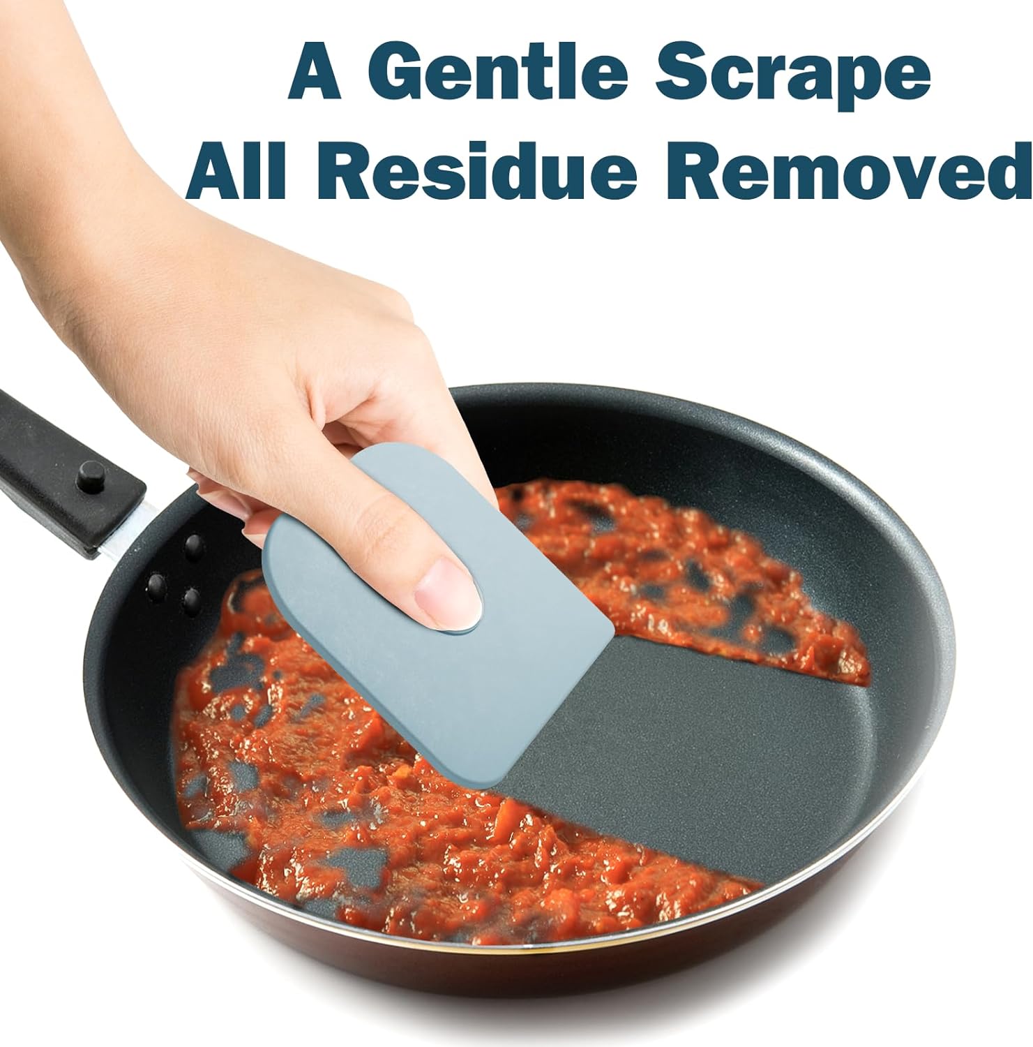 • All-Round Cleaning - Stiff and sharp edges of these kitchen scrapers are able to scrap the food residue in your pan, pot, plate or other cookware without leaving scratches; designed with 4-size angles, the pan scraper tool to can flexibly reach corners and crannies to make a thorough cleaning