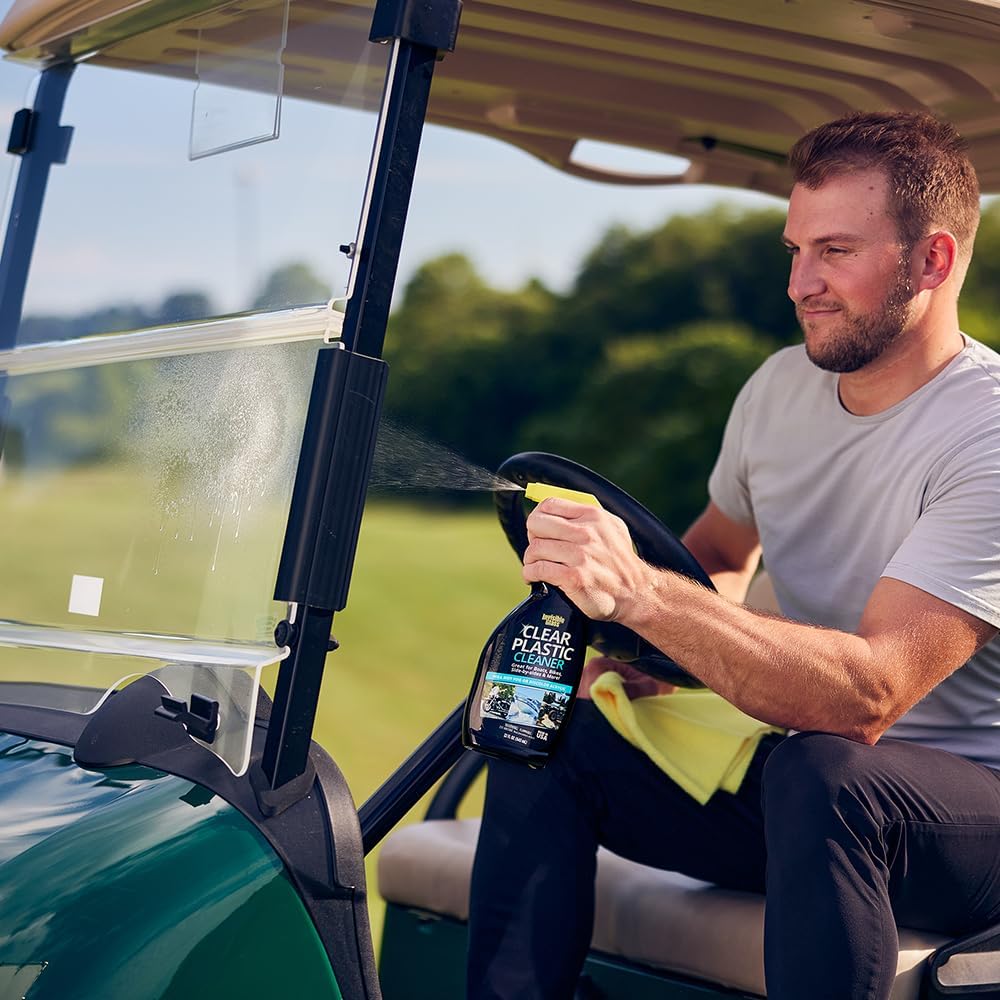 • PLASTIC SURFACE CLEANER: Safely cleans acrylic and vinyl windows, windshields, helmet visors, and more. Leaves no streaks or haze on any clear plastic surface, including aircraft windows, soft-top windows, golf cart windshields, and more.
