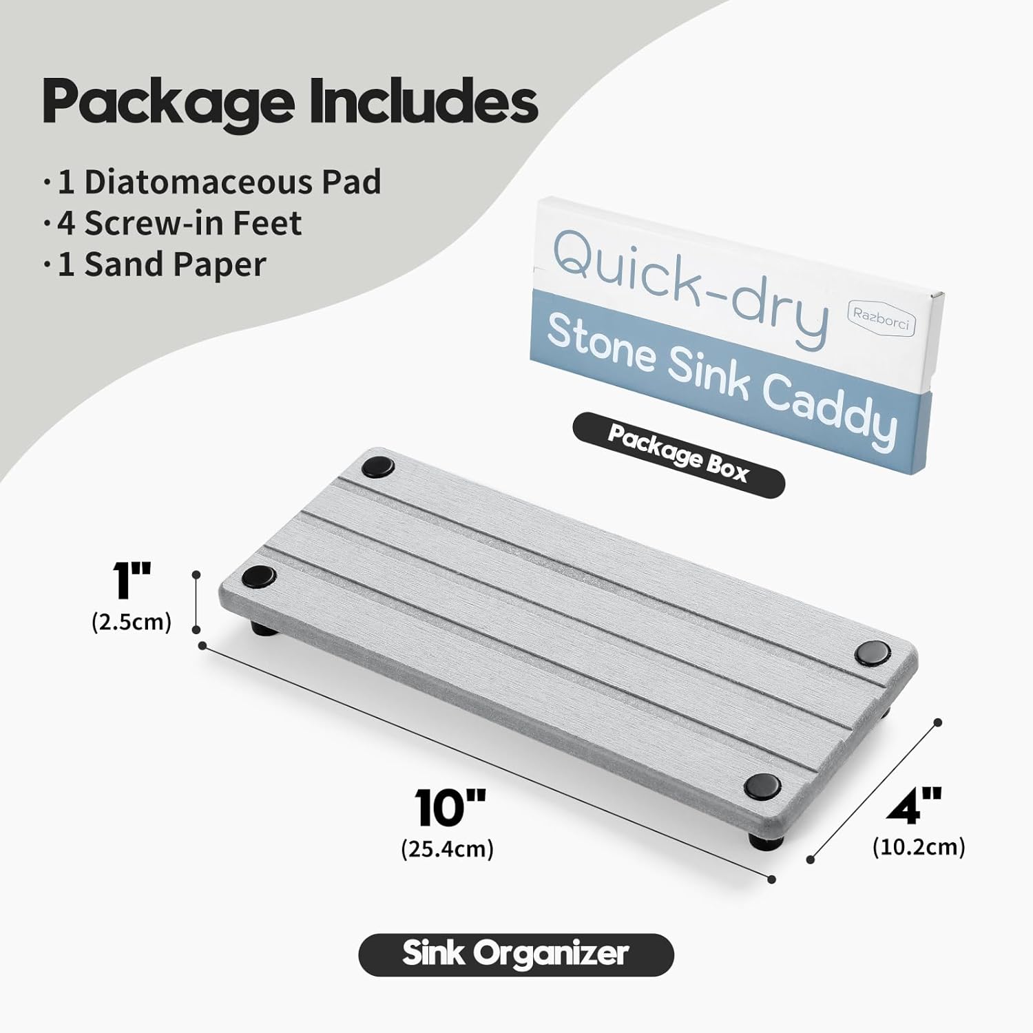 • 【Diatomaceous Earth Quick Stone Drying Tray】Keep your kitchen and bathroom countertops neatly arranged with this instant-drying stone sink caddy. This holder rack absorbs moisture quickly and is specially designed for your soaps, sponges, or brushes.