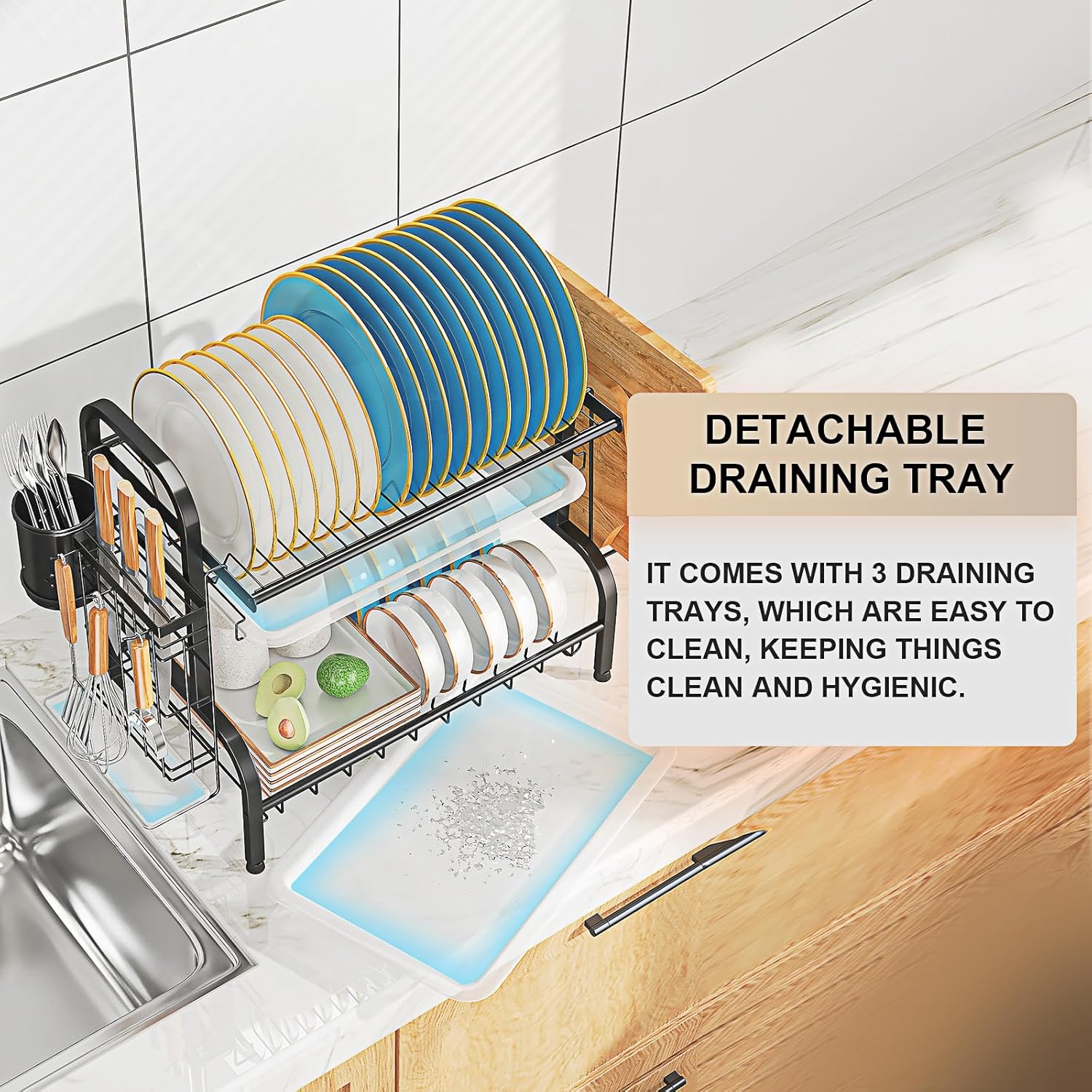 - Rustproof & Long Lasting: To prevent rust on the dish racks, this kitchen drying rack is made of food-grade Stainless Steel and constructed of thickened tube pipes, Stable and High Load Bearing.
