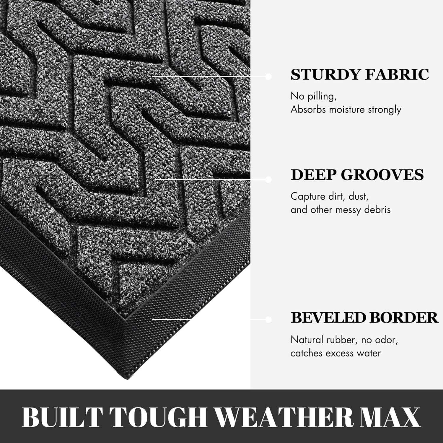 - Superior Dust Trapping & Waterproof: Featured deep Y-pattern grooves, the front door mat effectively scrapes off mud, dust and debris from shoe soles, keeping dirt outside your home. Made of high-quality polypropylene, this mat is waterproof and holds up perfectly even after rain. Its strong structure withstands heavy foot traffic without losing shape or functionality