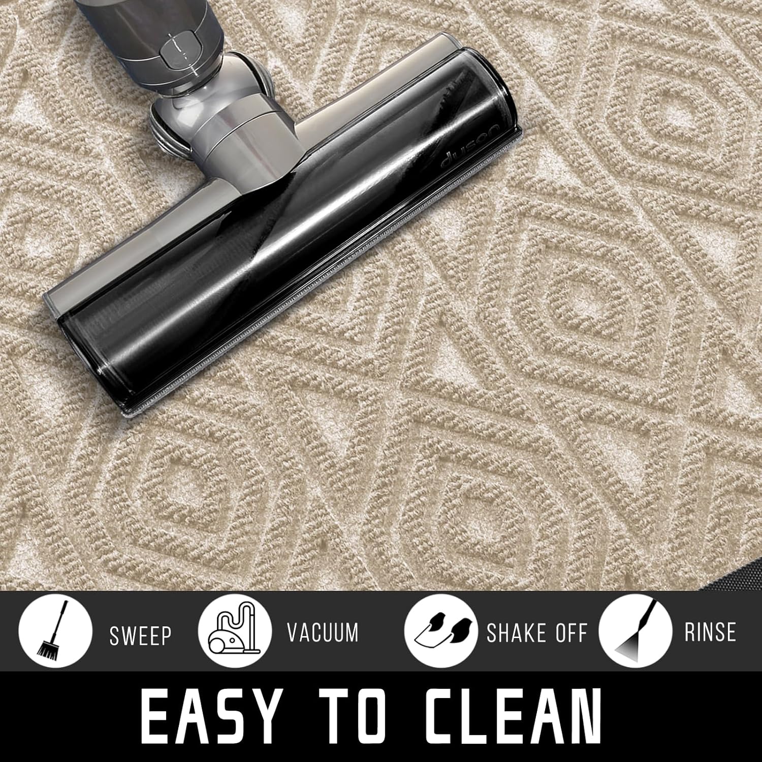 - [EASY TO CLEAN] Yimobra outdoor mat, Just use a vacuum cleaner, or sweep with a broom, or tap the backing and shake the doormat. For more in-depth cleaning, use a garden hose to rinse the floor mat, then hang it in a ventilated place to air dry it or use a dryer