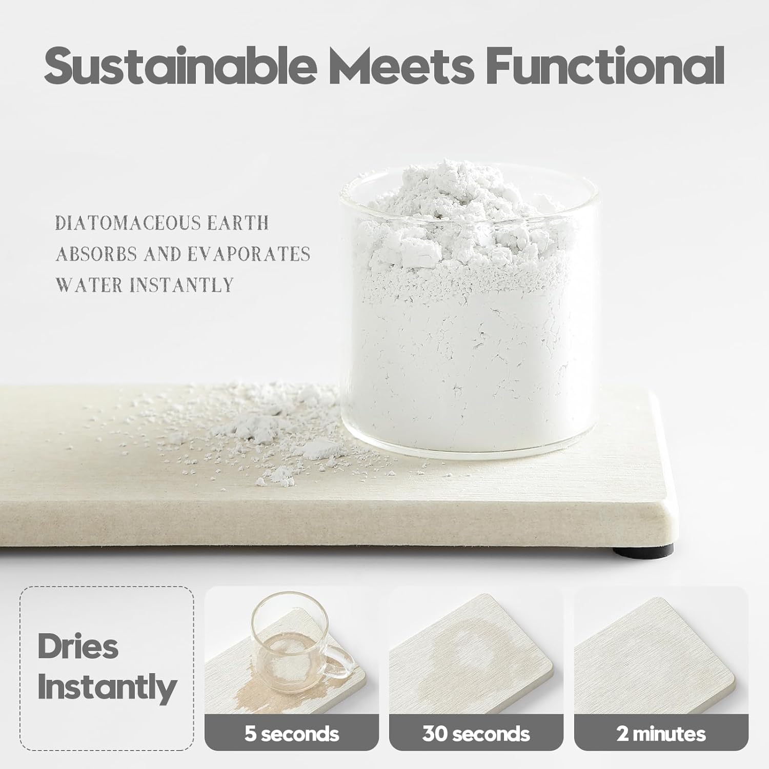 • 【Sustainable Materials】Natural diatomaceous earth dries instantly thanks to its ability to evaporate moisture. Safe, Sustainable and Long-lasting