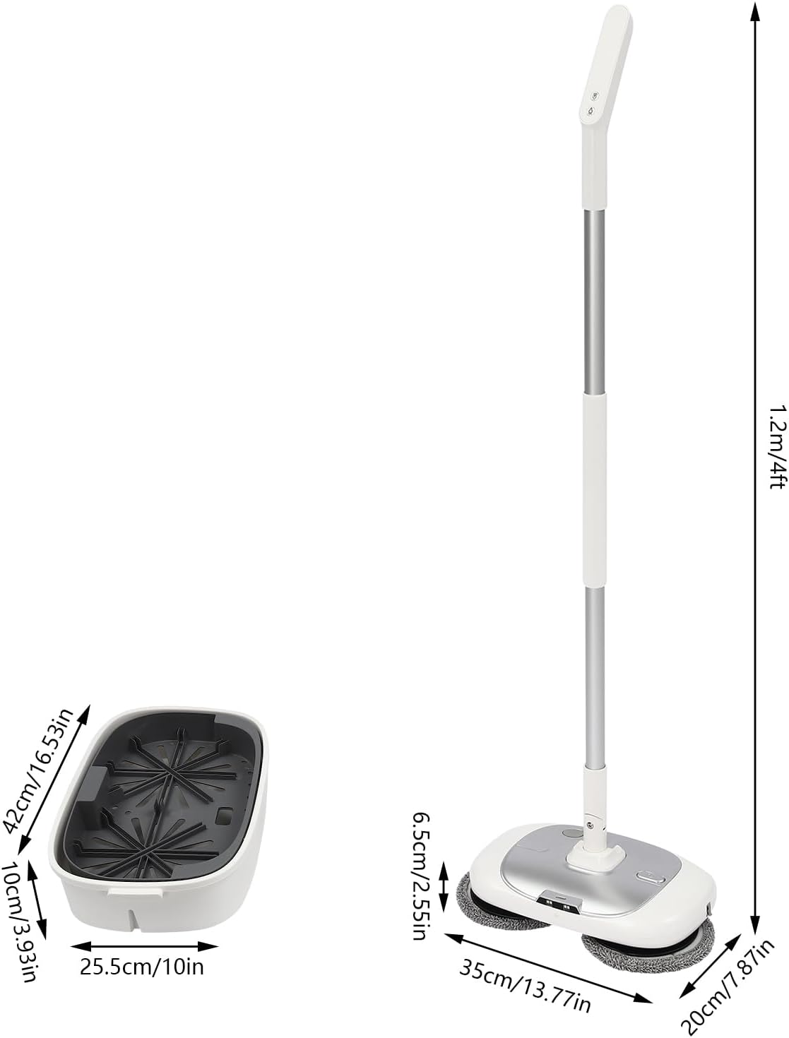 - ❏Convenient to Use: The 2000mAh lithium battery takes about 4-6 hours to charge and can be used for about 100 minutes on a single charge, allowing you to conveniently wipe the floors in your home. The foot switch allows you to start or pause cleaning with the touch of your foot without bending over while mopping. The cordless design ensures convenient cleaning without pulling a cord.