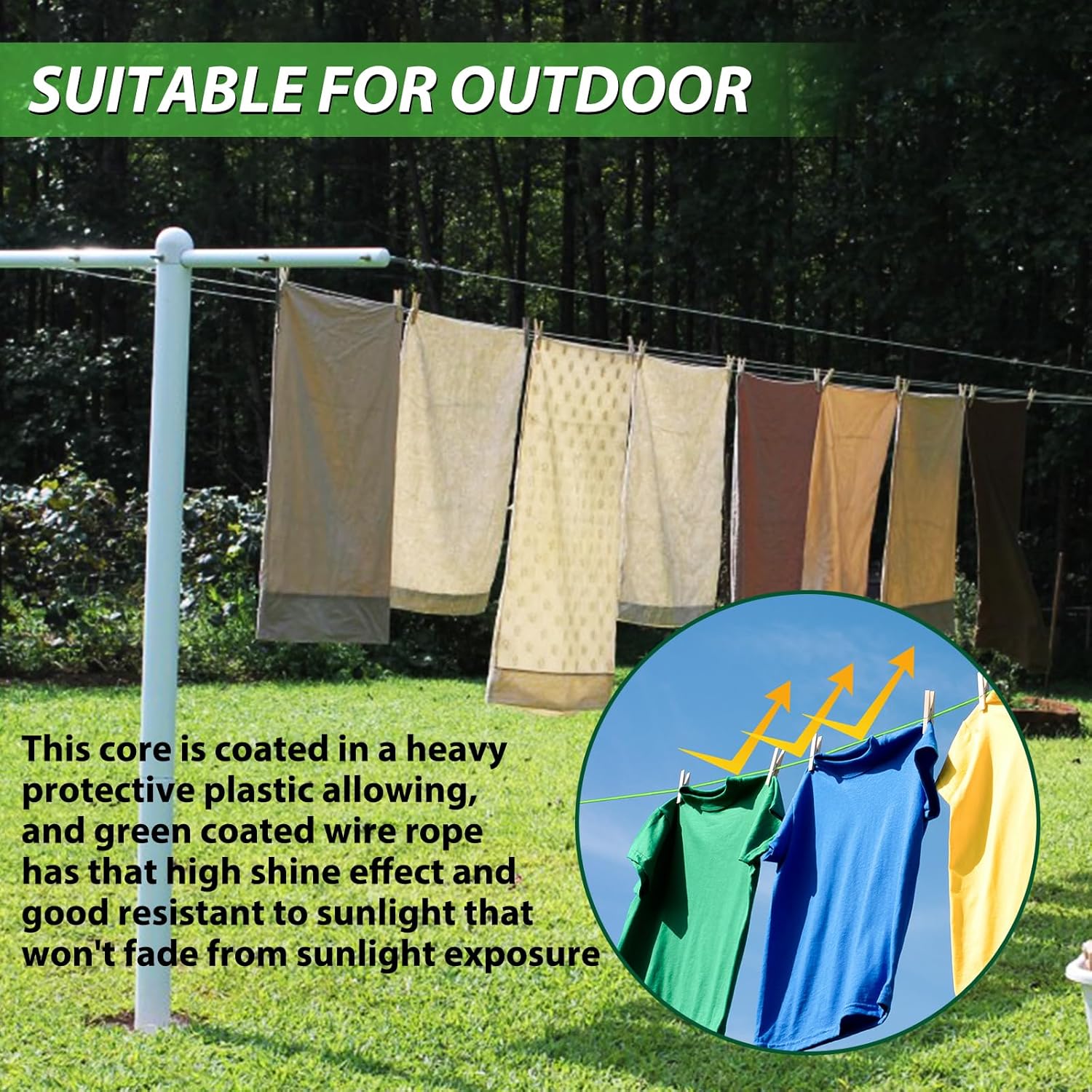 - Functionality & Aesthetics: Our green coated wire rope has that high shine effect that won't fade from sunlight exposure. Moreover, the vivid and attractive green color looks great for training grape vine, it can assimilate into the surroundings perfectly